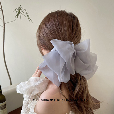 인터넷 연예인 쉬폰 봄 클립 포니 테일 슈퍼 요정 큰 활 머리글 여성의 머리 뒤 2023 새로운 여름 헤어 액세서리스토어 가기