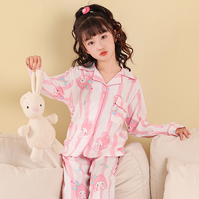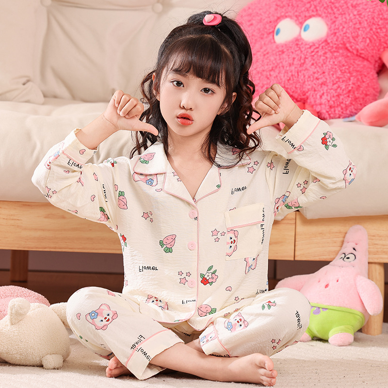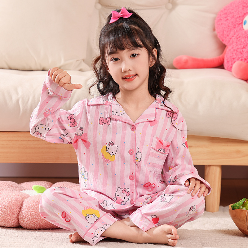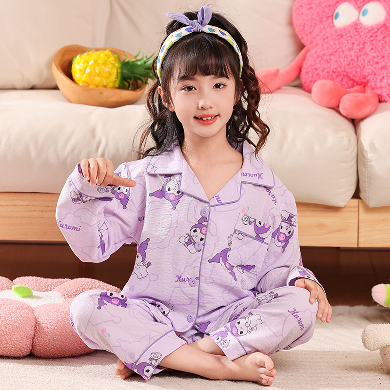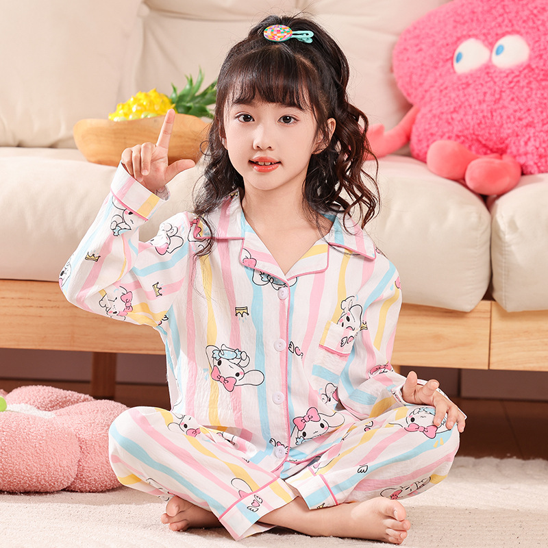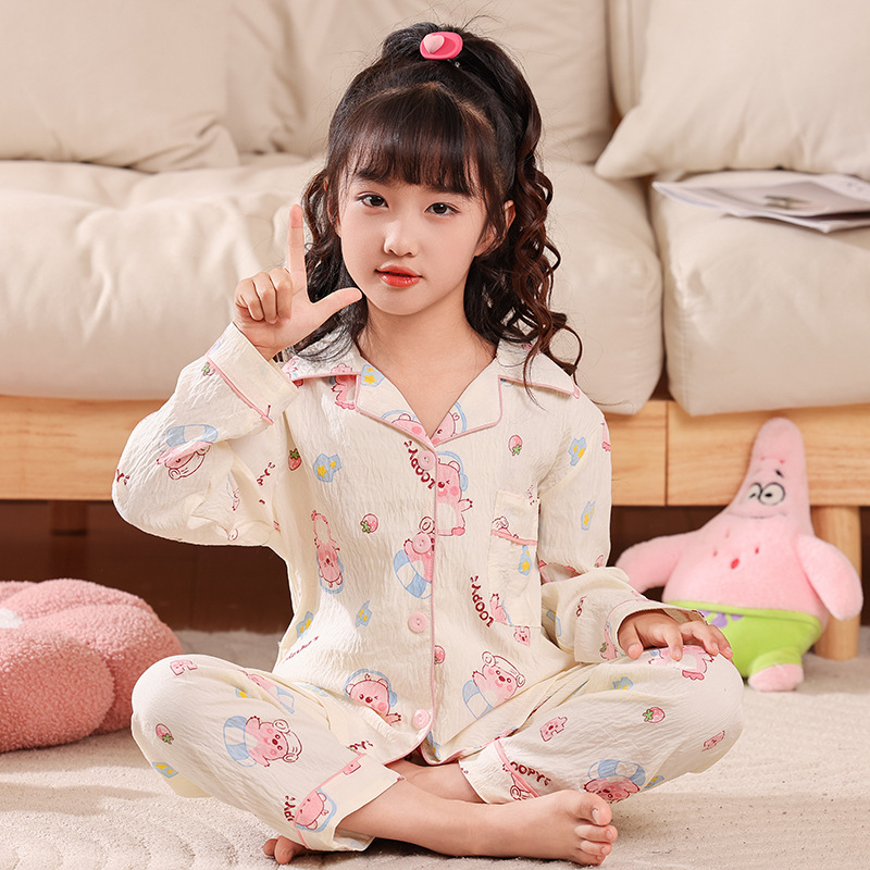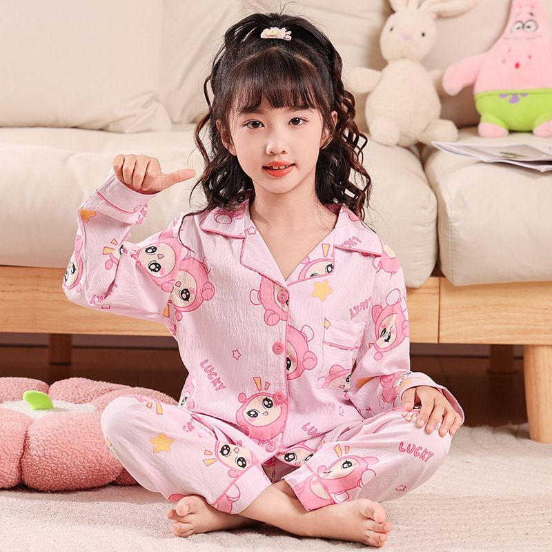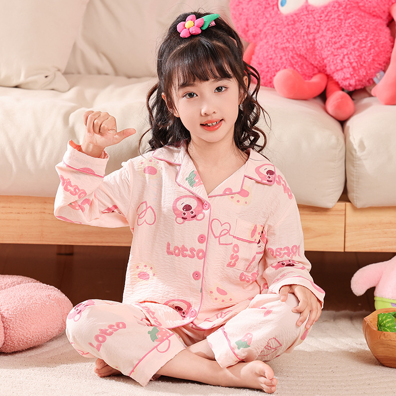 어린이 잠옷 봄과 가을 구름 면 긴 소매 어린 소녀의 아기 소녀의 얇은 옷깃 홈 옷 만화 세트스토어 가기