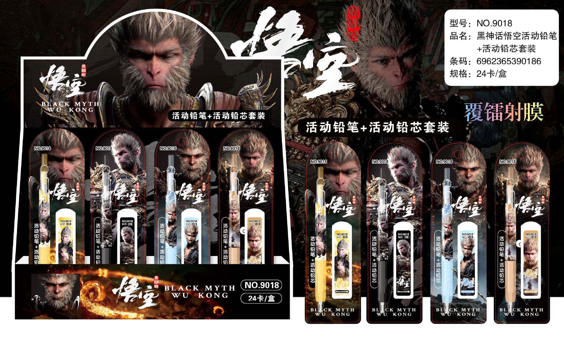 인터넷 레드 블랙 신화 우콩 기계 연필 높은 색상 가치 학생 특수 3 학년 활동 연필 세트 0.5mm스토어 가기