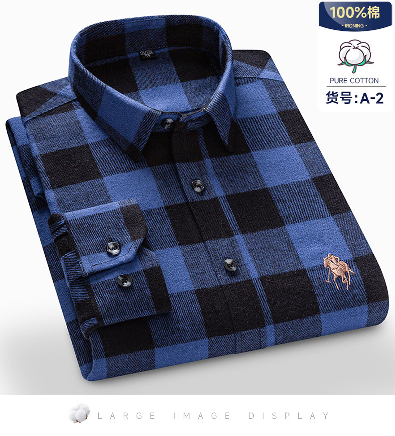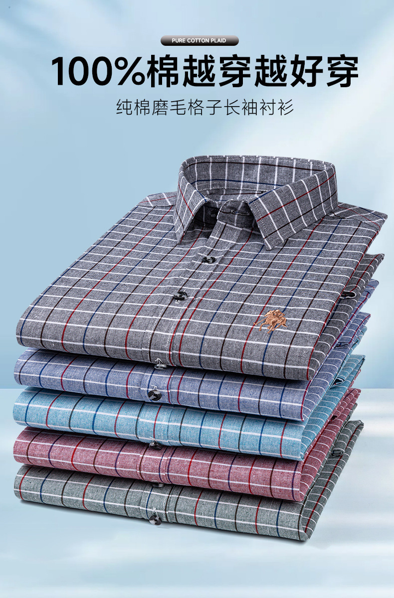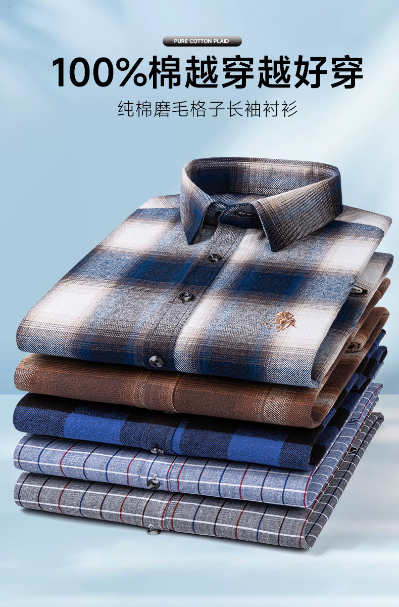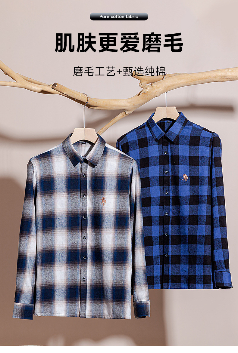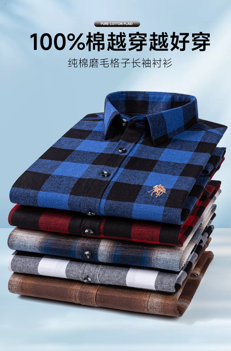 남성용 봄과 가을 새 면 샌딩 긴팔 셔츠 패션 캐주얼 코튼 체크 셔츠 트렌디 코튼스토어 가기