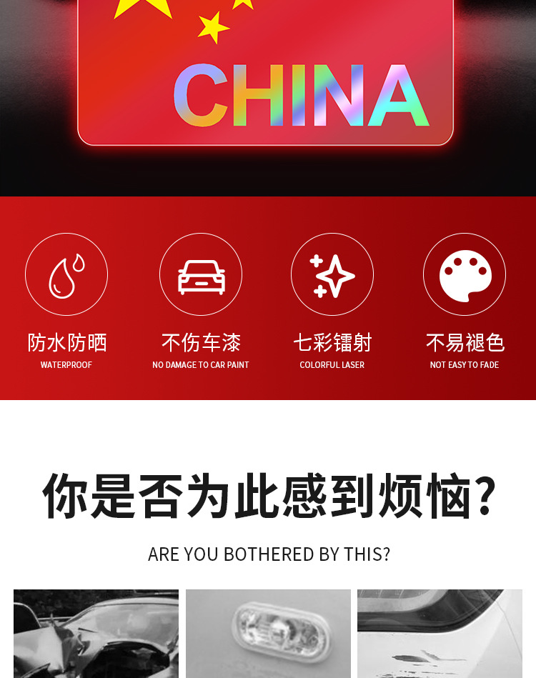 중국 국기 5 성급 붉은 깃발 자동차 스티커 오토바이 전기 자동차 스티커 스크래치 대피소 3D 자동차 반사 스티커스토어 가기