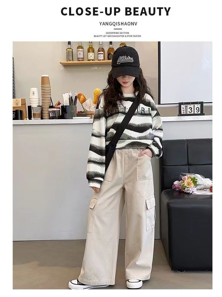 소녀 가을 스웨터 2024 새로운 서양식 소녀 크루 넥베이스 셔츠 어린이 줄무늬 한국 정상스토어 가기