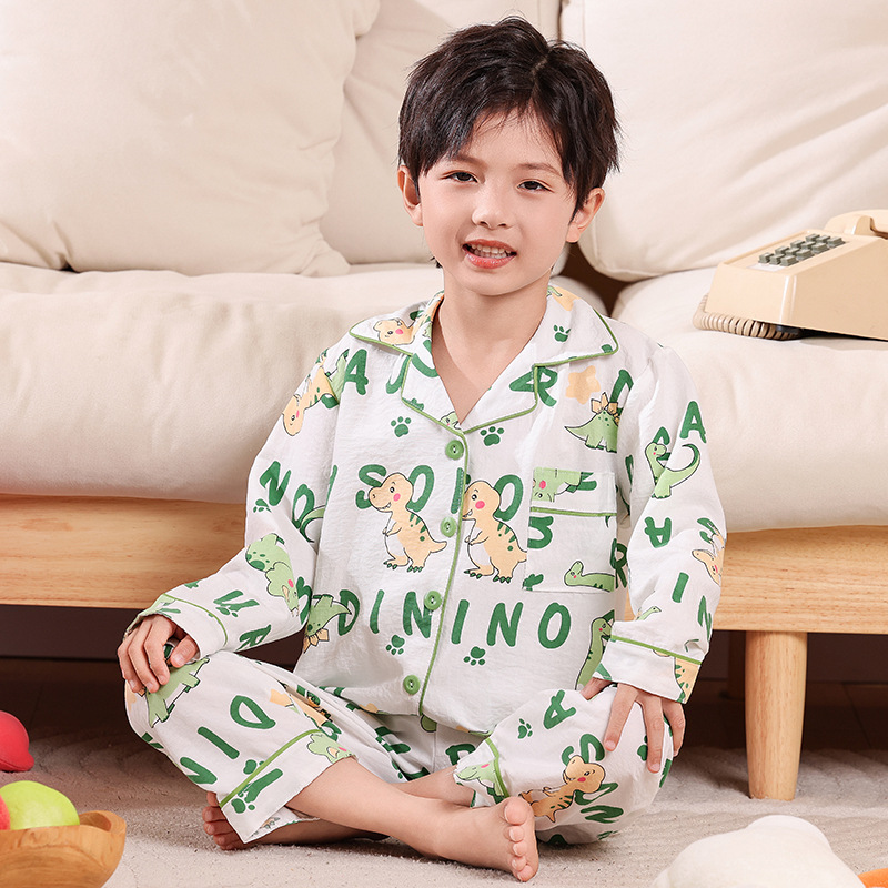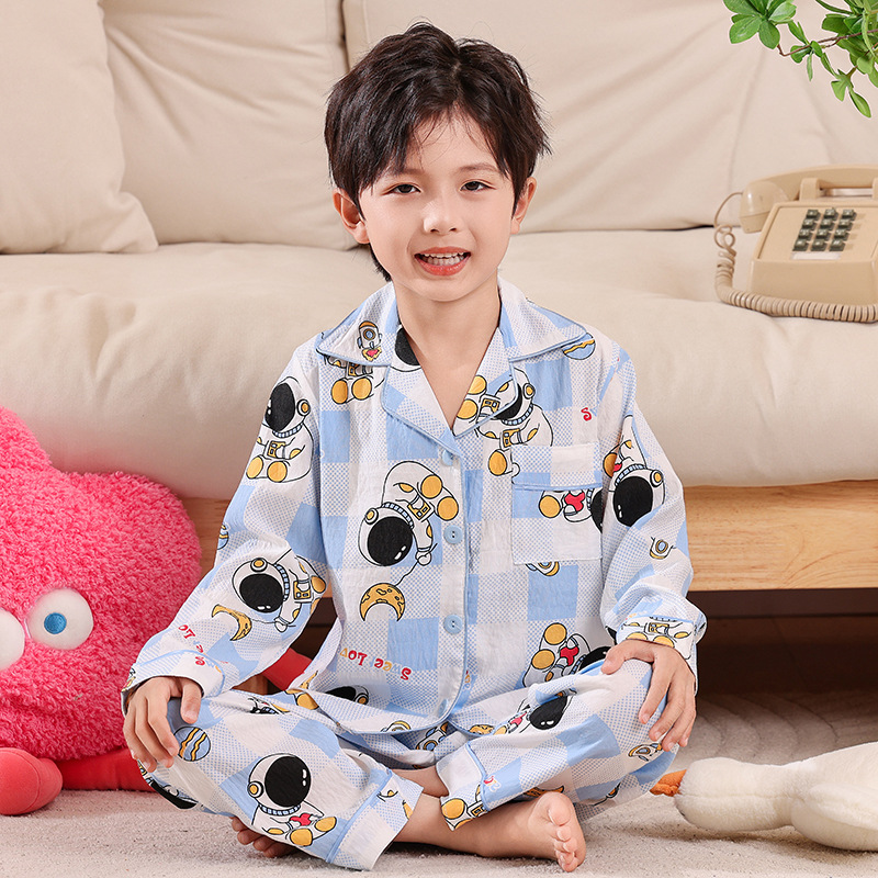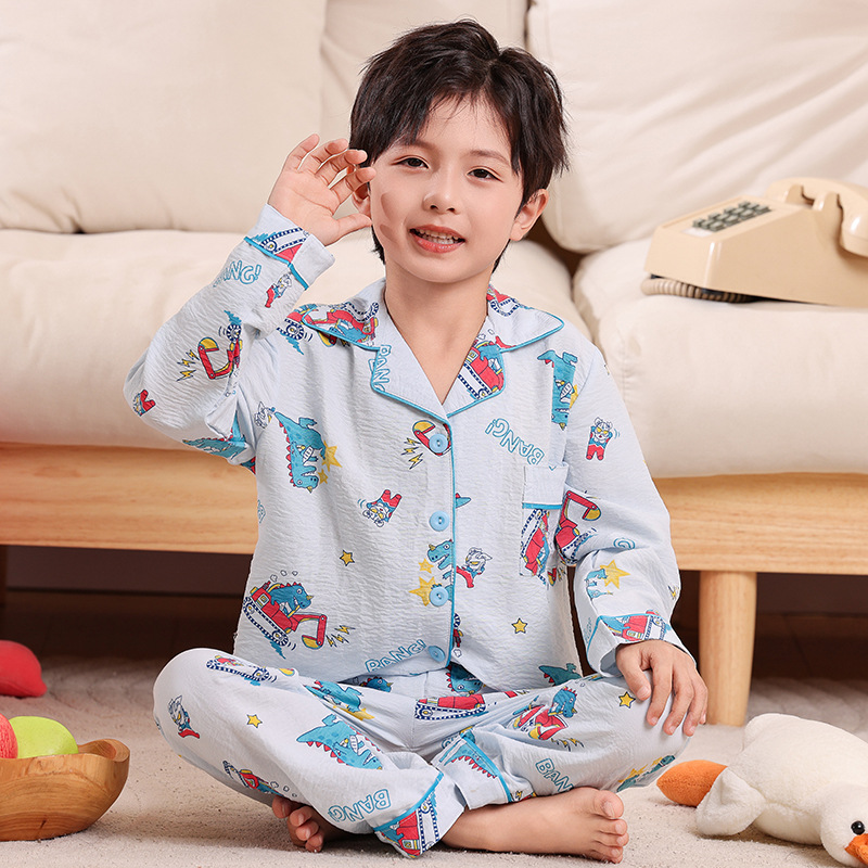어린이 잠옷 소년 봄과 가을 긴 소매 얇은 세트 중 큰 소년 만화 2024 새로운 가을 가정 옷