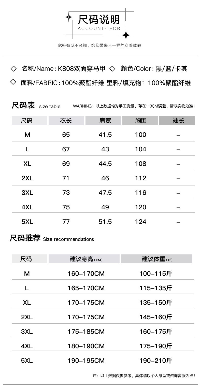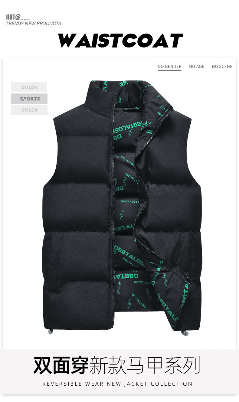 양면 면 패딩 재킷 조끼 남자의 두꺼운 따뜻한 조끼 젊고 중년의 유행 캐주얼 재킷 민소매스토어 가기