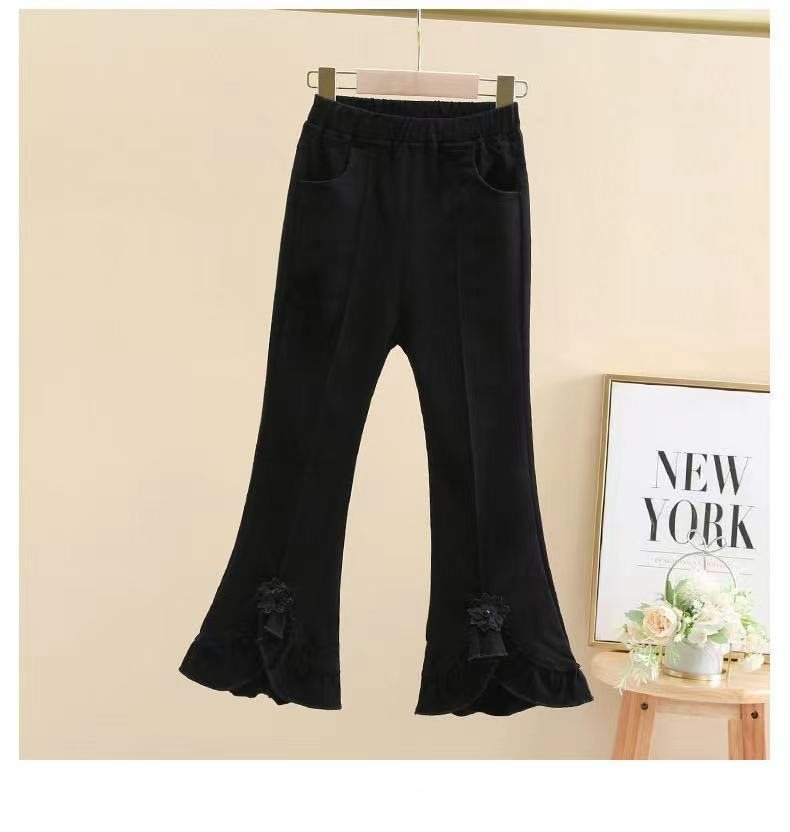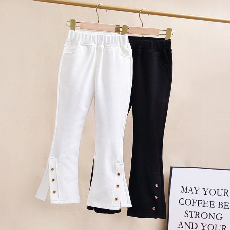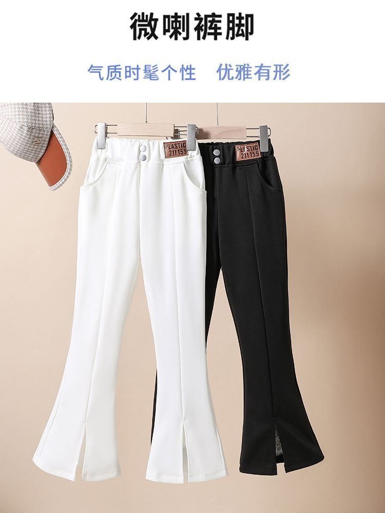 여아용 플라 팬츠 외부 착용 스플릿 외국식 블랙 캐주얼 봄과 여름 어린이 바지 큰 어린이 봄과 가을 유행