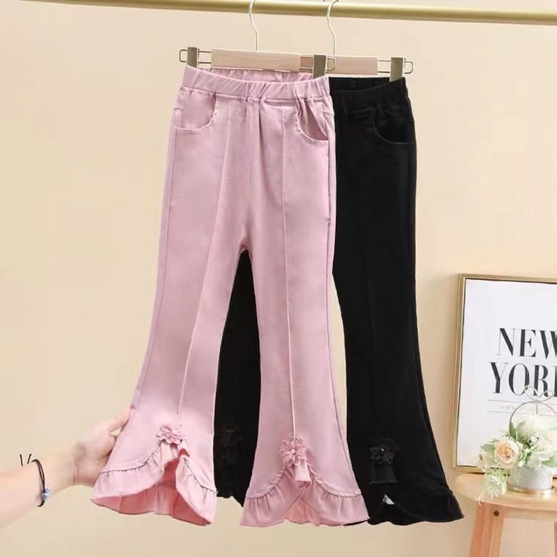 여아용 플라 팬츠 외부 착용 스플릿 외국식 블랙 캐주얼 봄과 여름 어린이 바지 큰 어린이 봄과 가을 유행스토어 가기