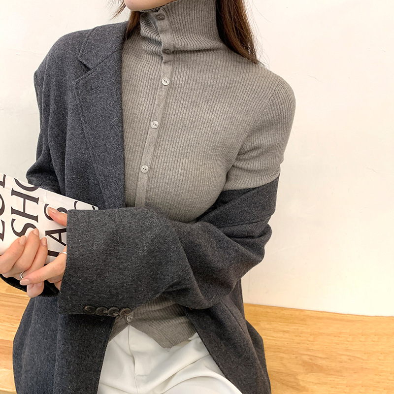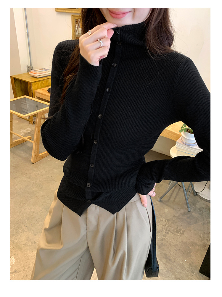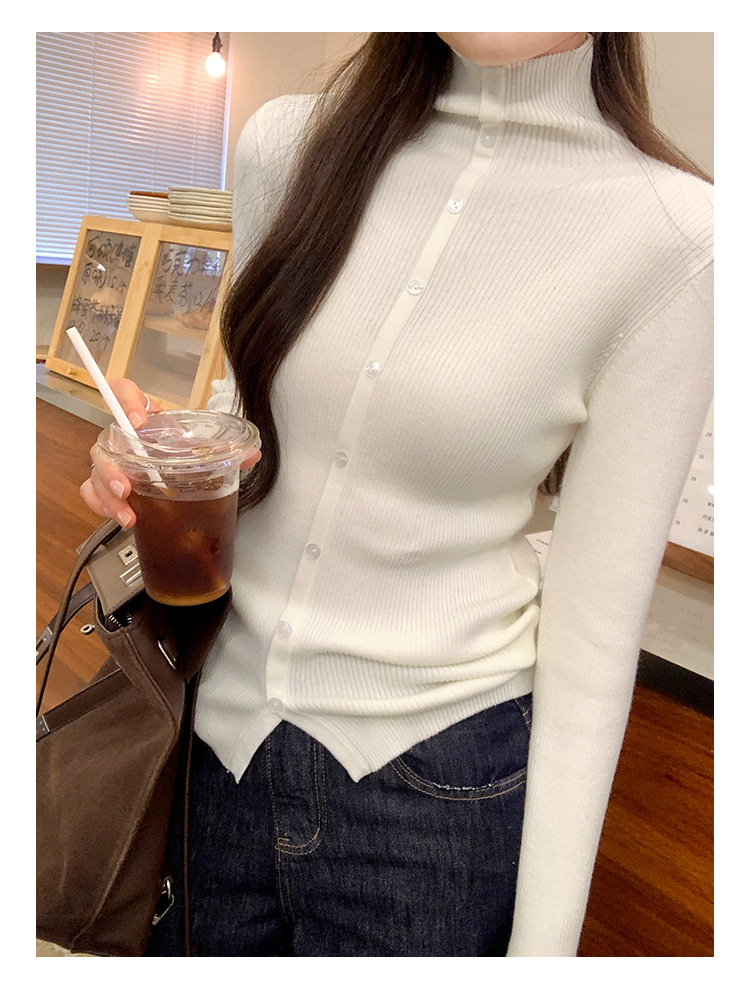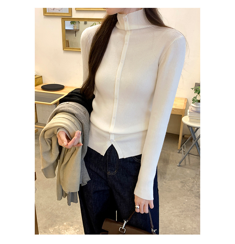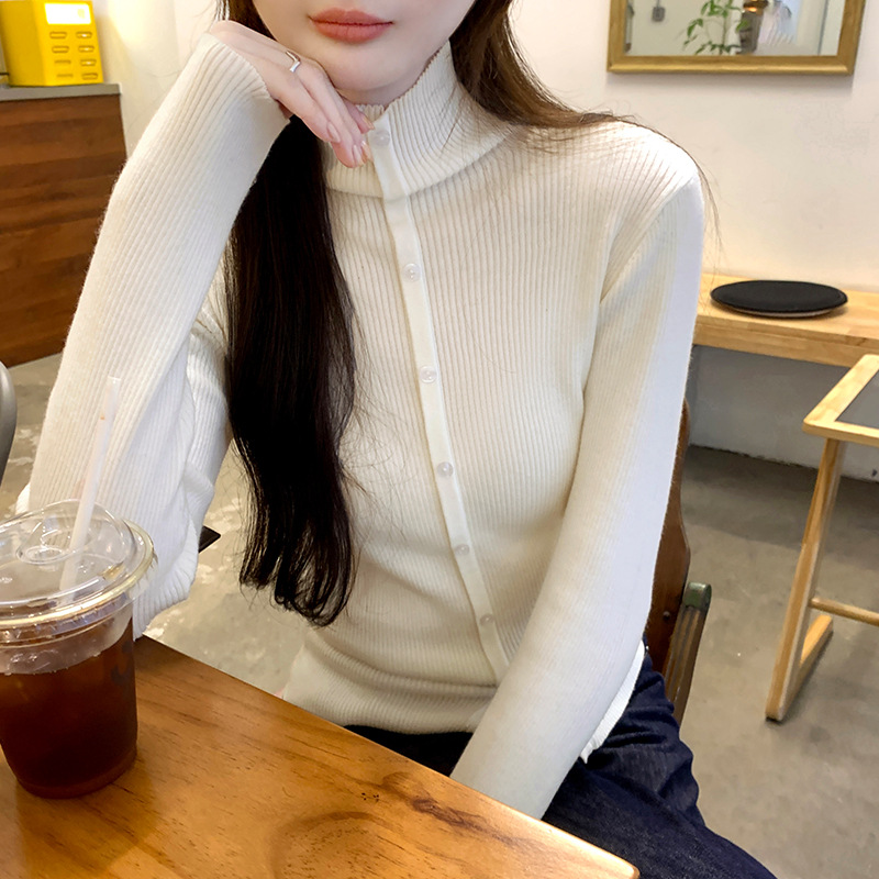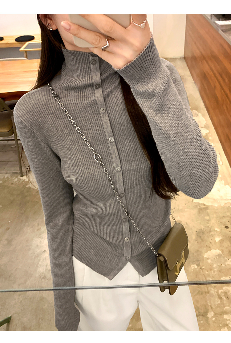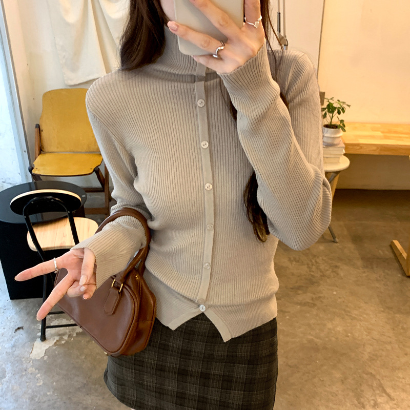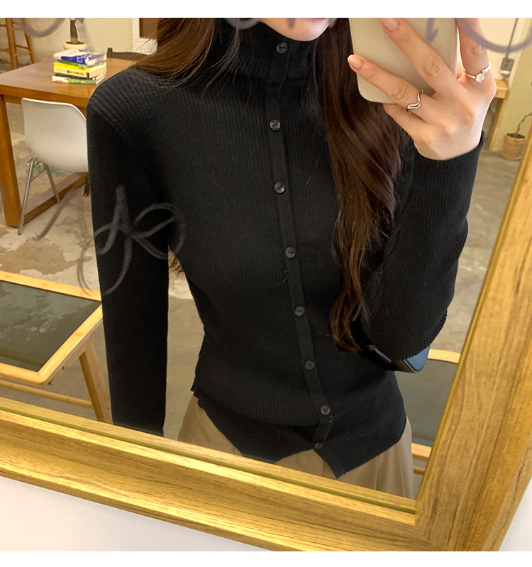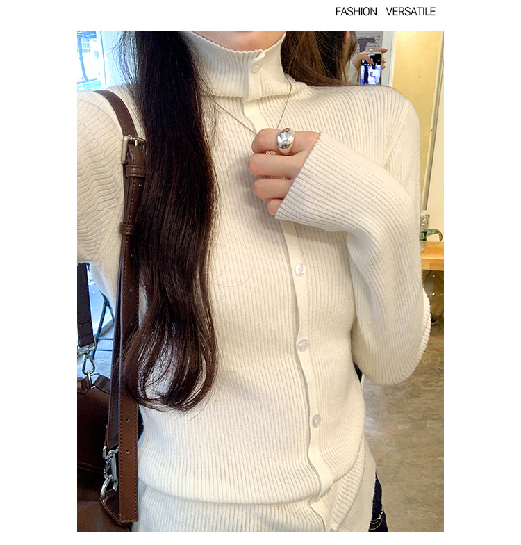 싱글 브레스트 디자인 하이 칼라 긴팔 스웨터 여성의 2024 가을 및 겨울 새로운 내베이스 슬림 핏 슬림 핏 탑스토어 가기