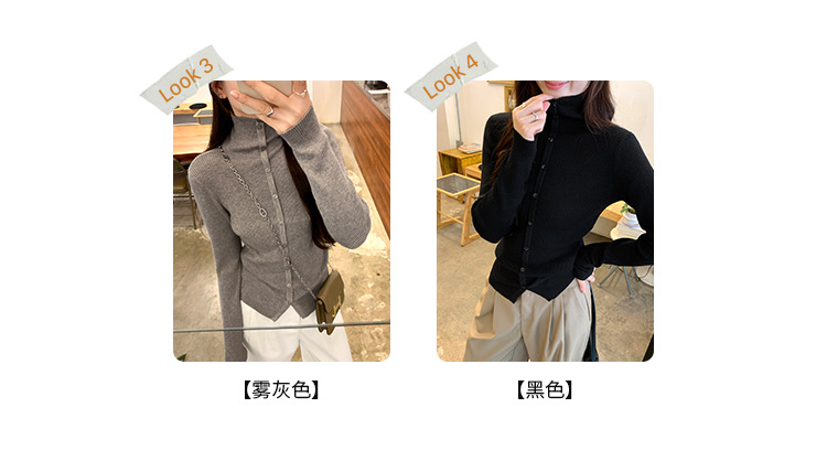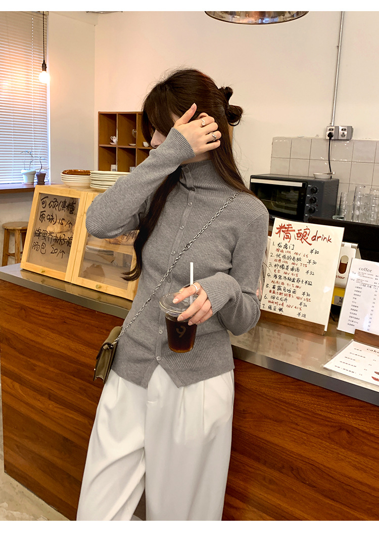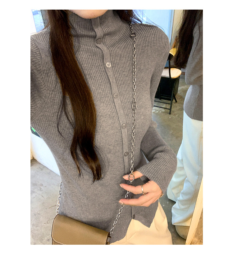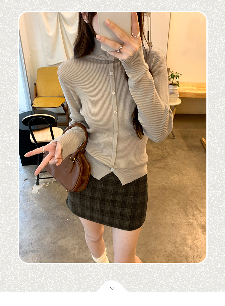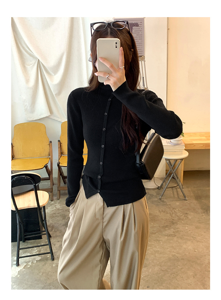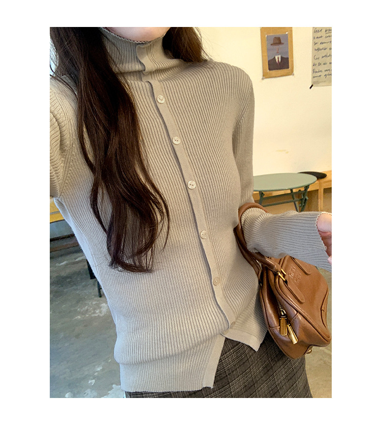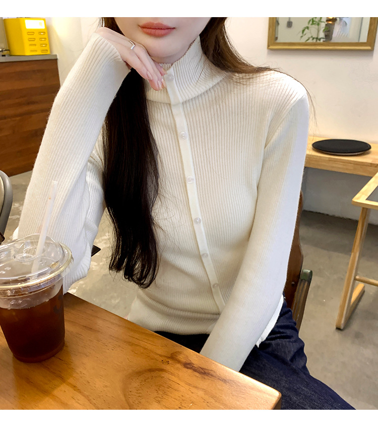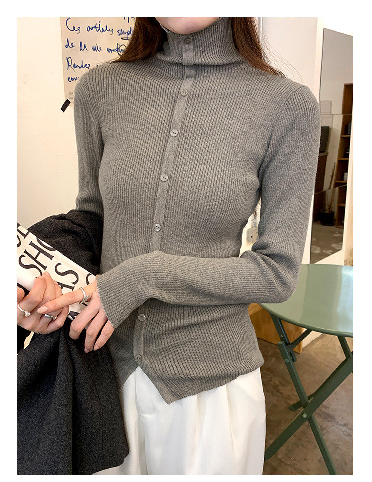 싱글 브레스트 디자인 하이 칼라 긴팔 스웨터 여성의 2024 가을 및 겨울 새로운 내베이스 슬림 핏 슬림 핏 탑스토어 가기