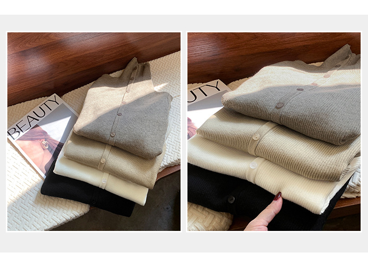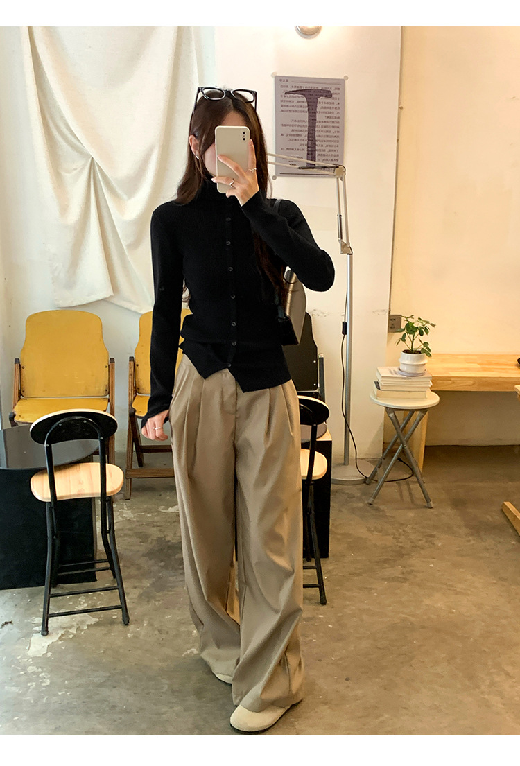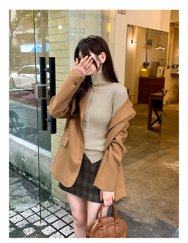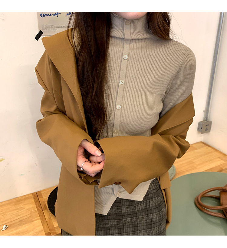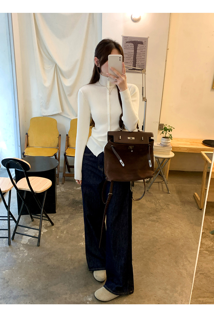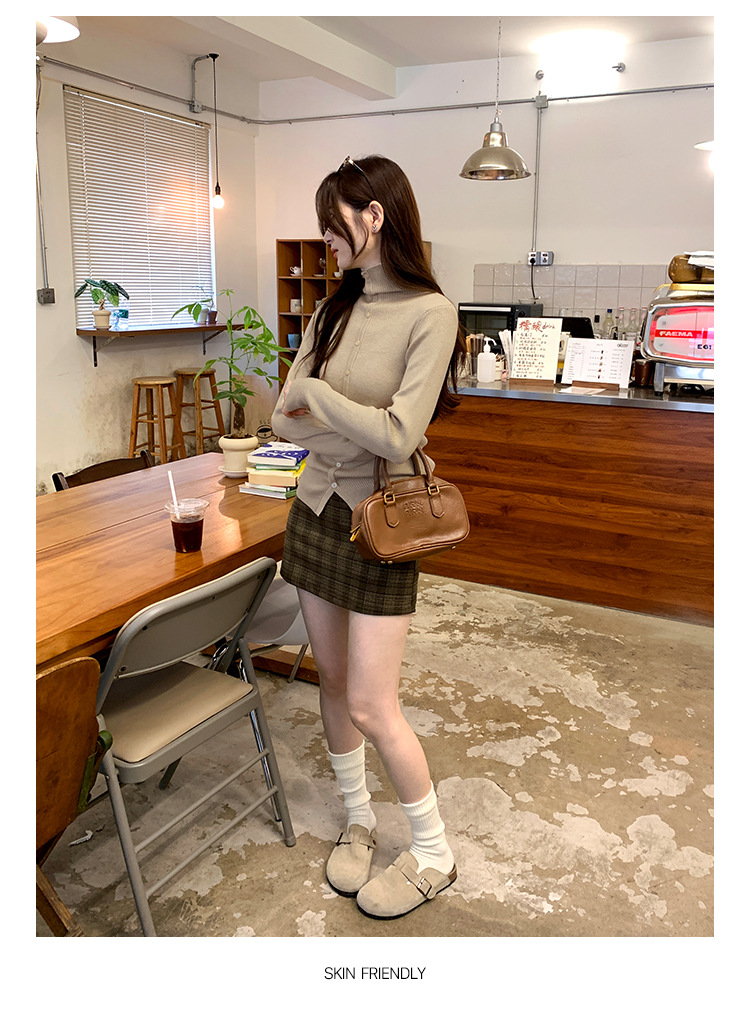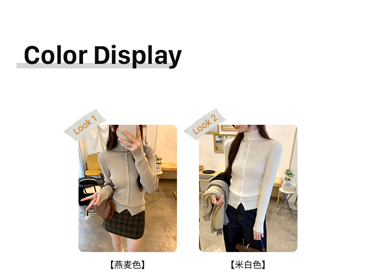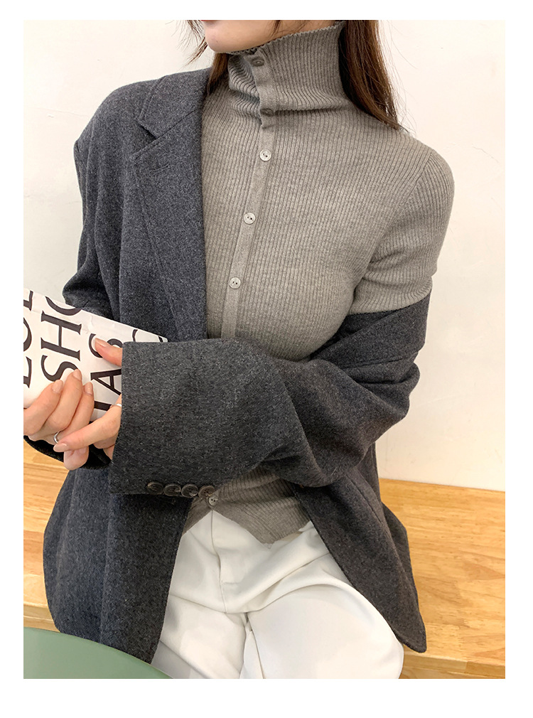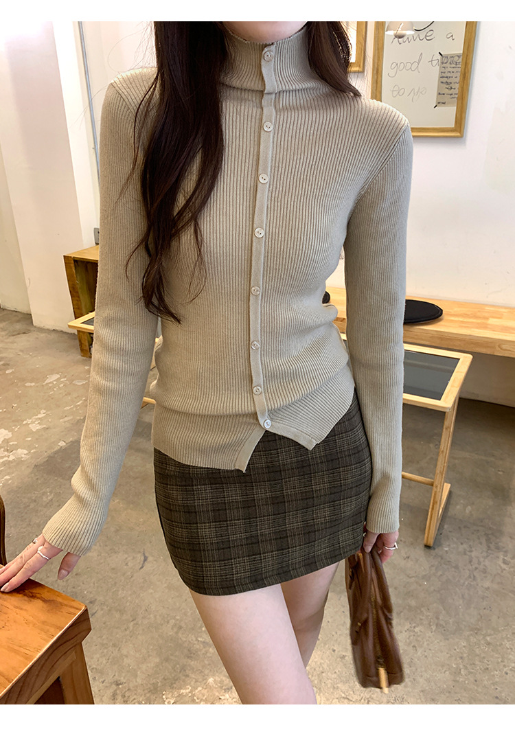 싱글 브레스트 디자인 하이 칼라 긴팔 스웨터 여성의 2024 가을 및 겨울 새로운 내베이스 슬림 핏 슬림 핏 탑스토어 가기