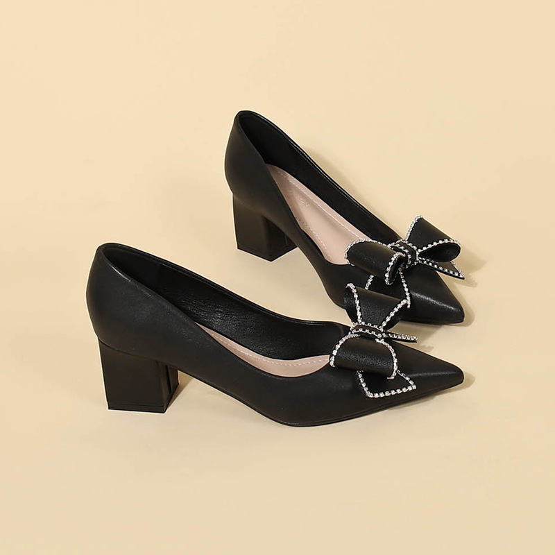 소프트 가죽 두꺼운 힐 인터뷰 여성 신발 2024 새로운 블랙 전문 작업 신발 비행 점유 공무원 원피스 하이힐