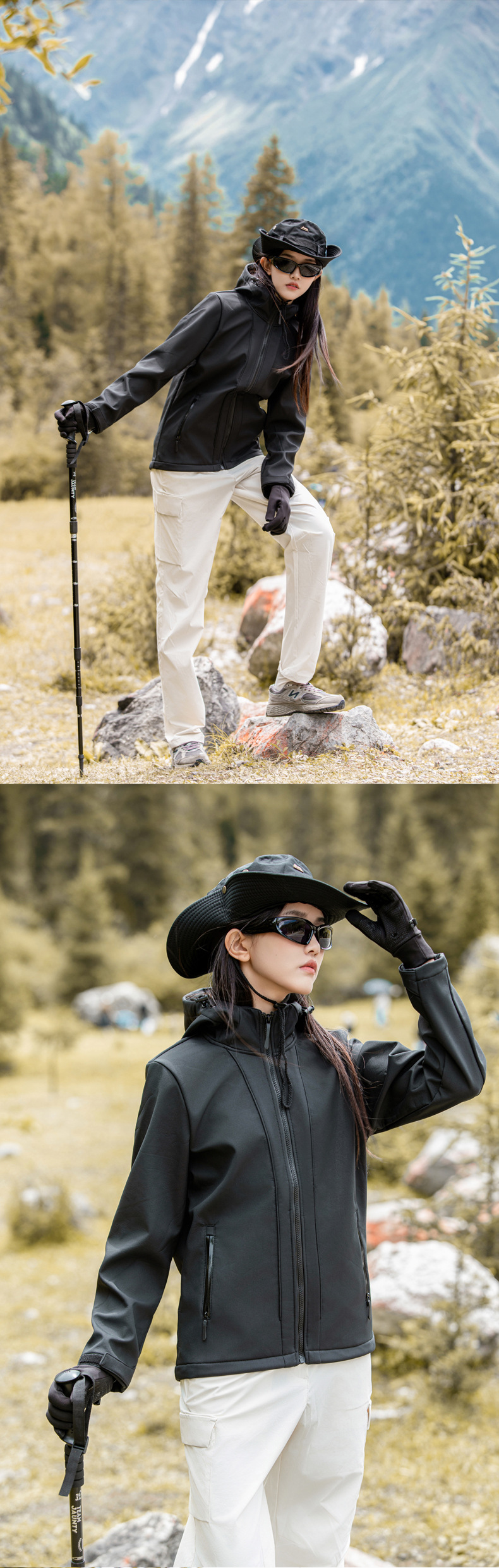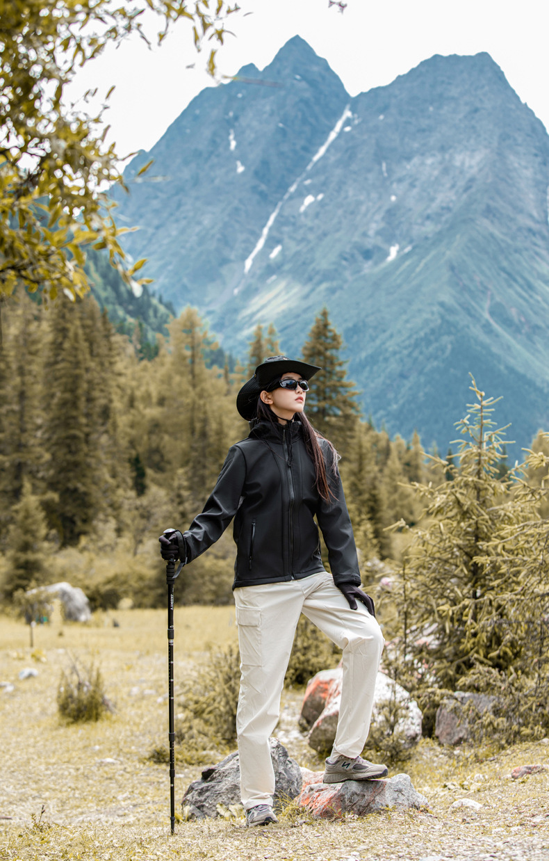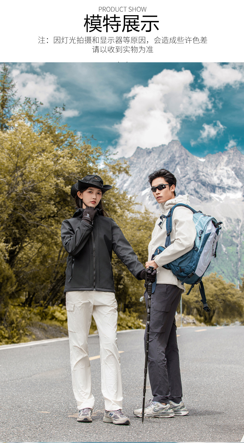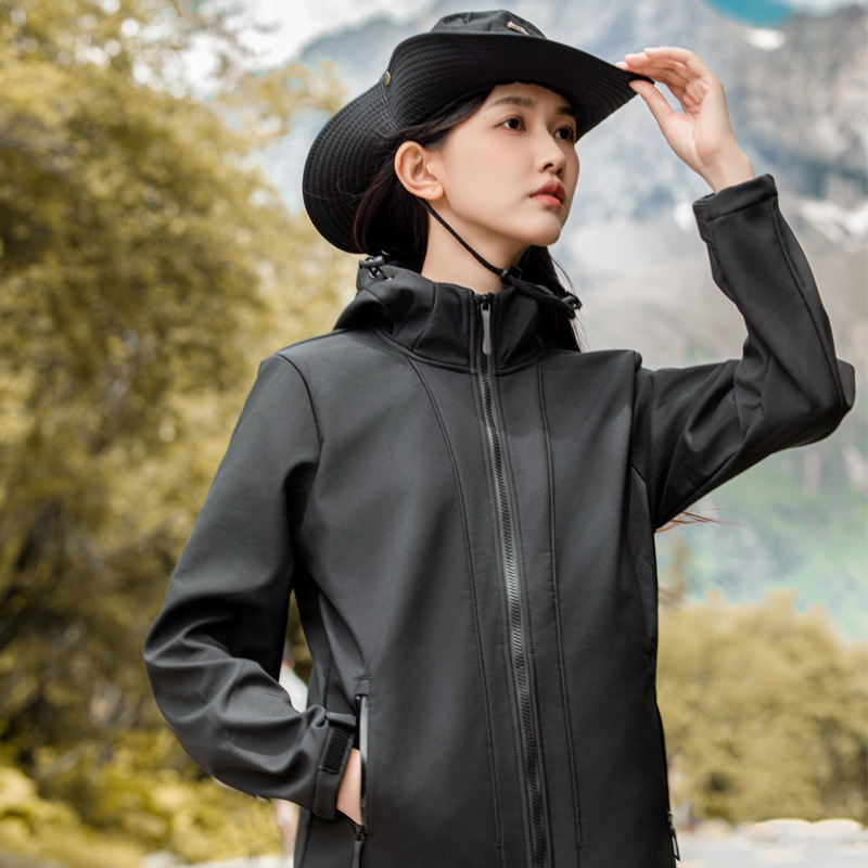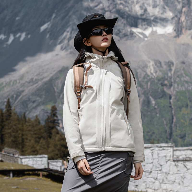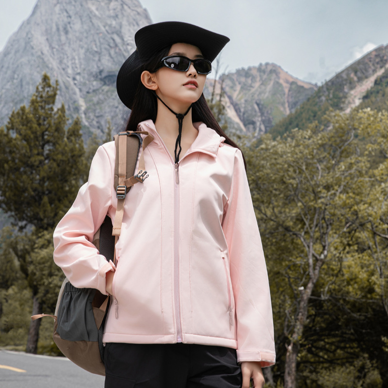 야외 소프트 쉘 재킷 남자의 가을과 겨울 낚시 후드 소프트 쉘 재킷 3 방지 기모 방수 등산 재킷 여성 자켓