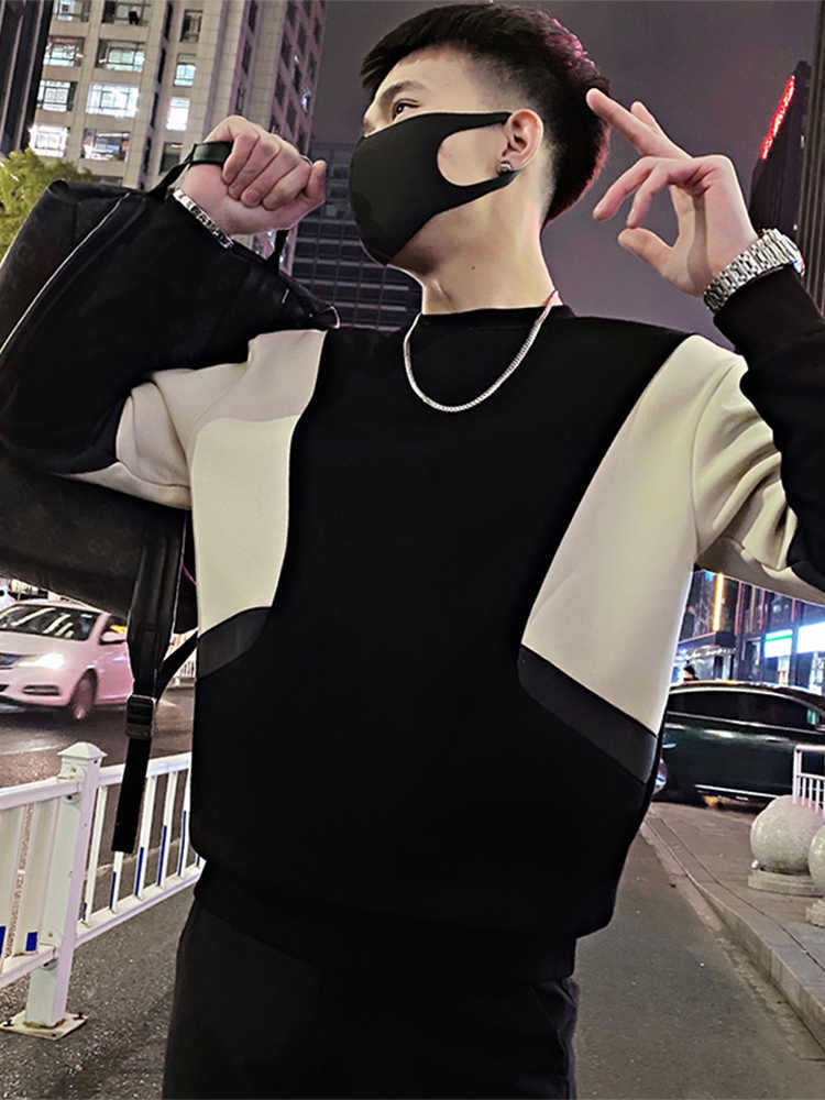 Ruffian Shuai 남성용 명암 라운드 넥 스웨터 남성 하이 엔드 패션 브랜드 슬리밍 허리 탑 봄 가을 겨울베이스 셔츠