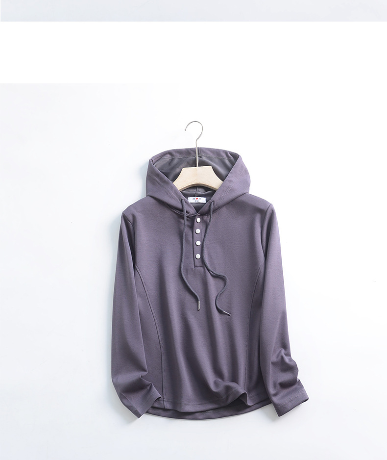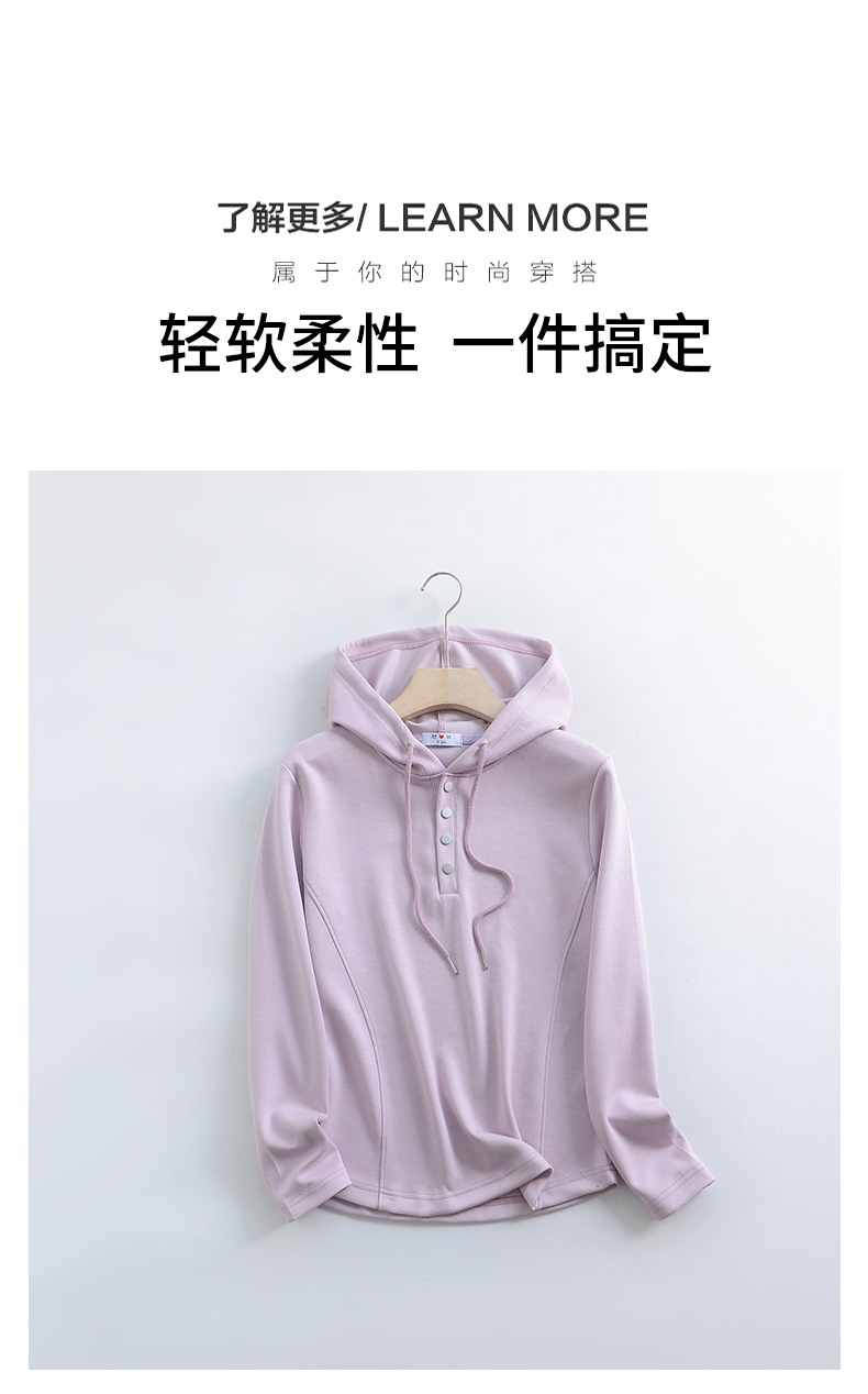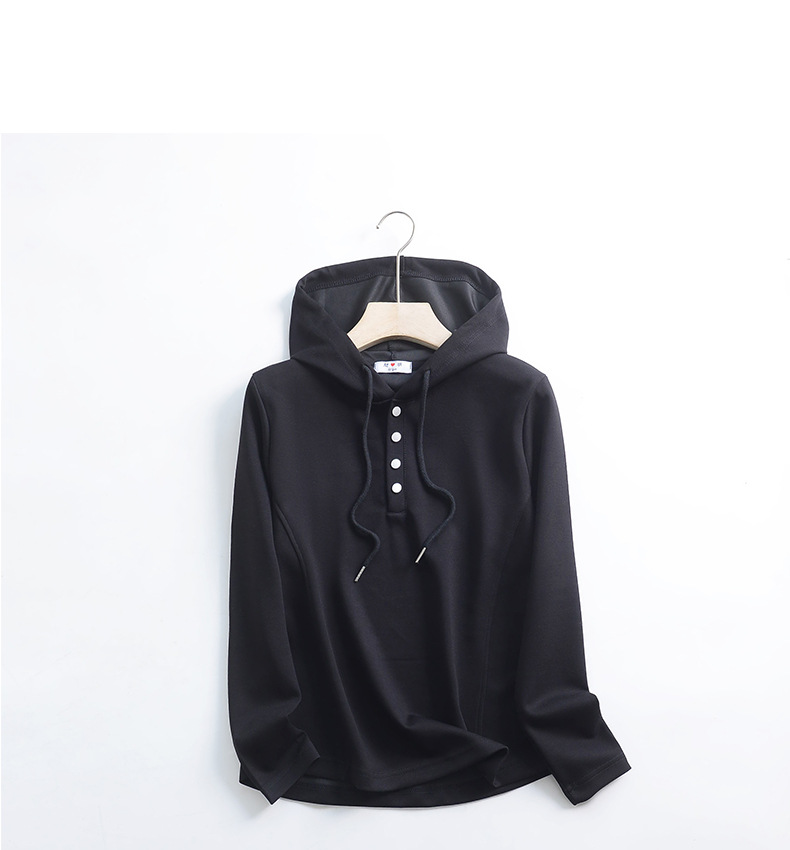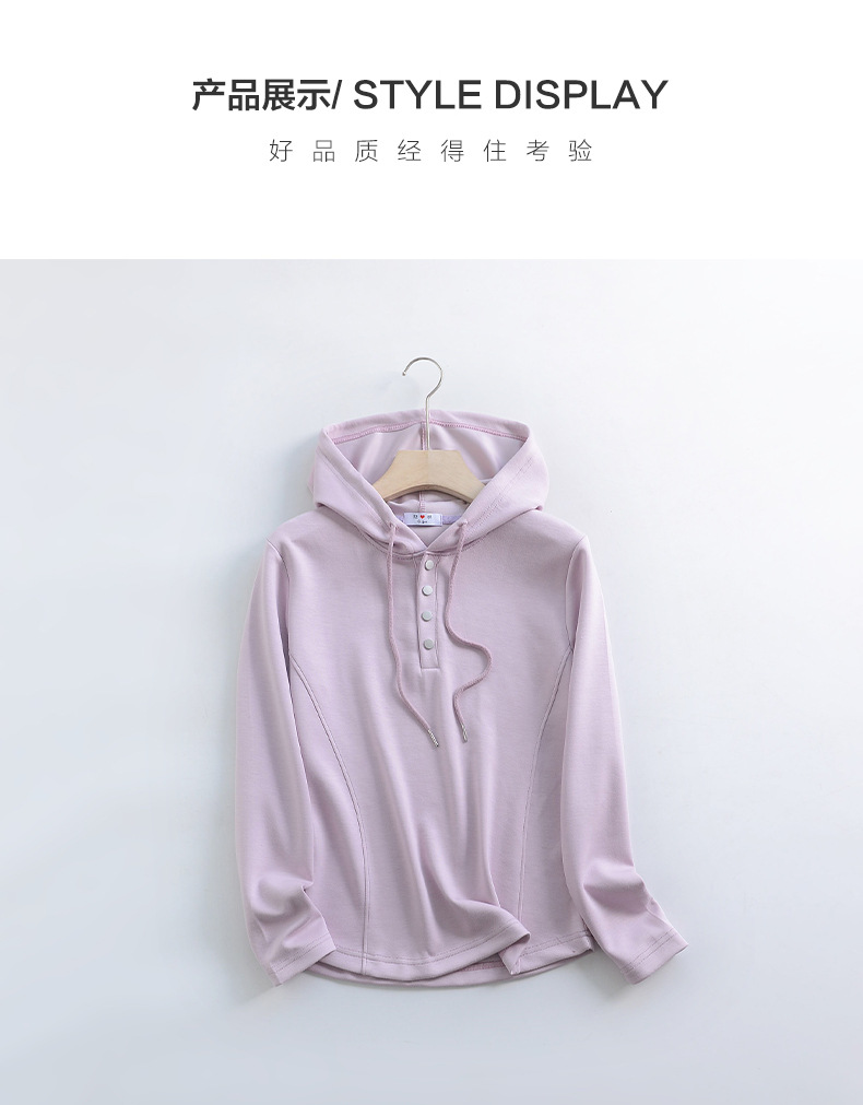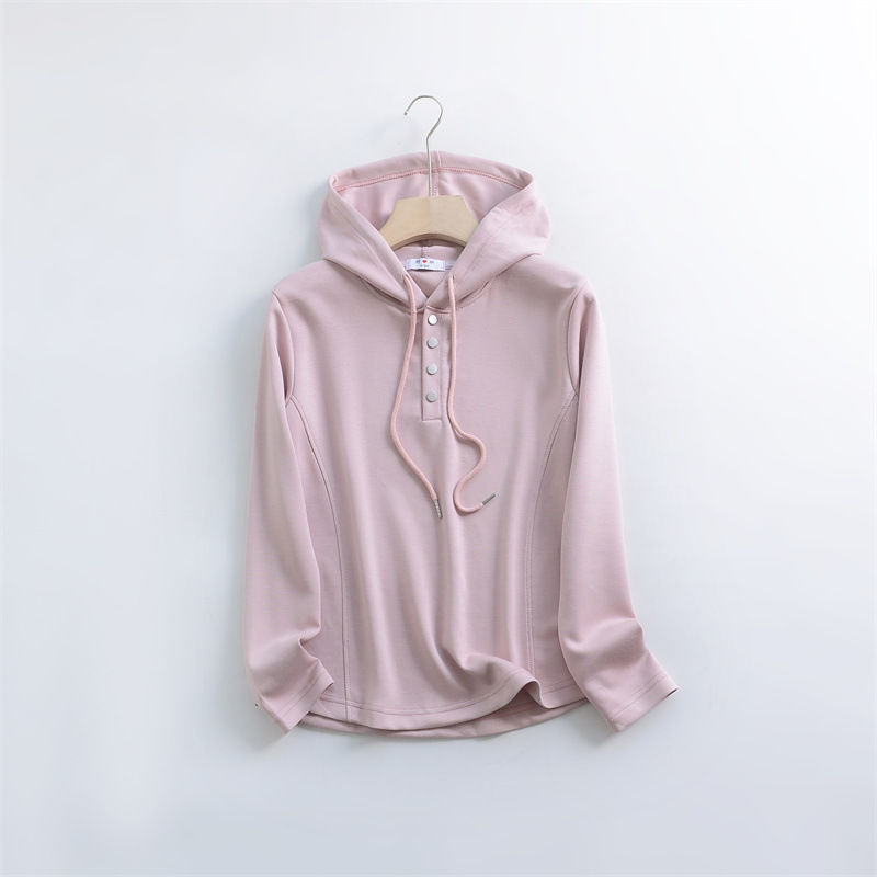 秋冬宽松连帽卫衣女新款外穿纽扣纯棉上衣大码内搭纯色帽衫休闲