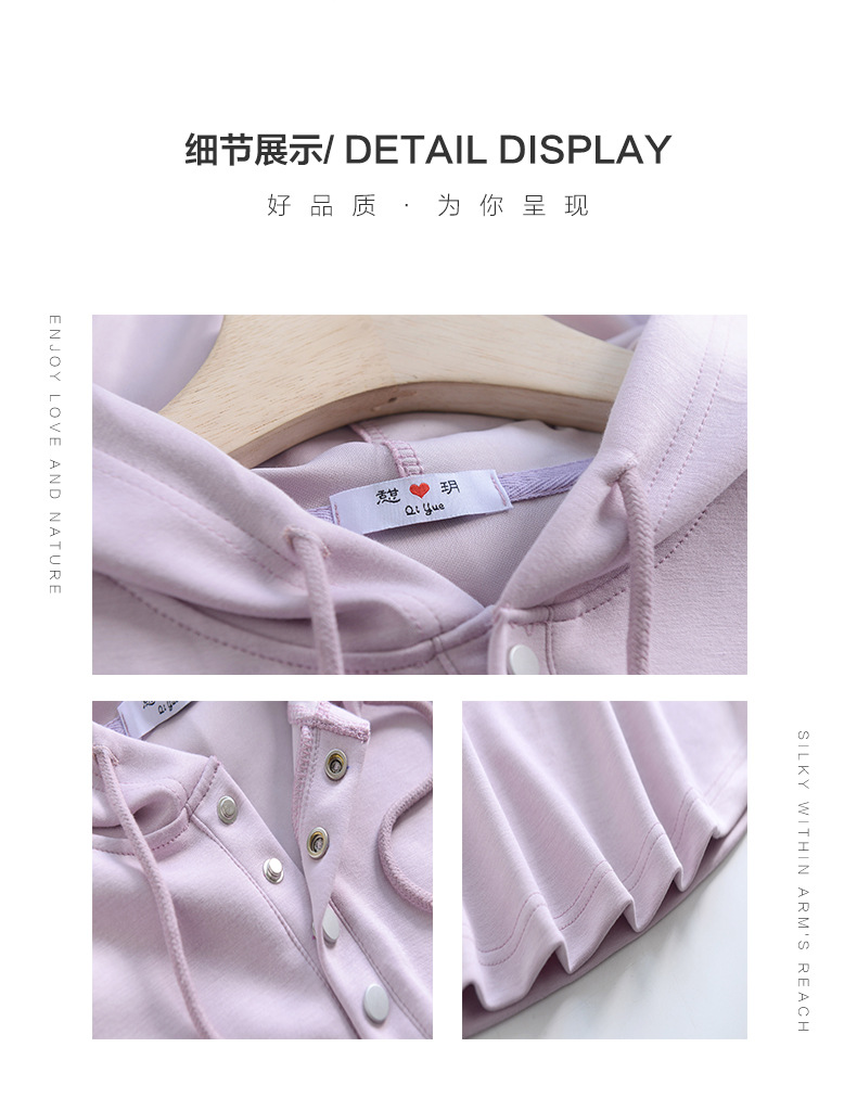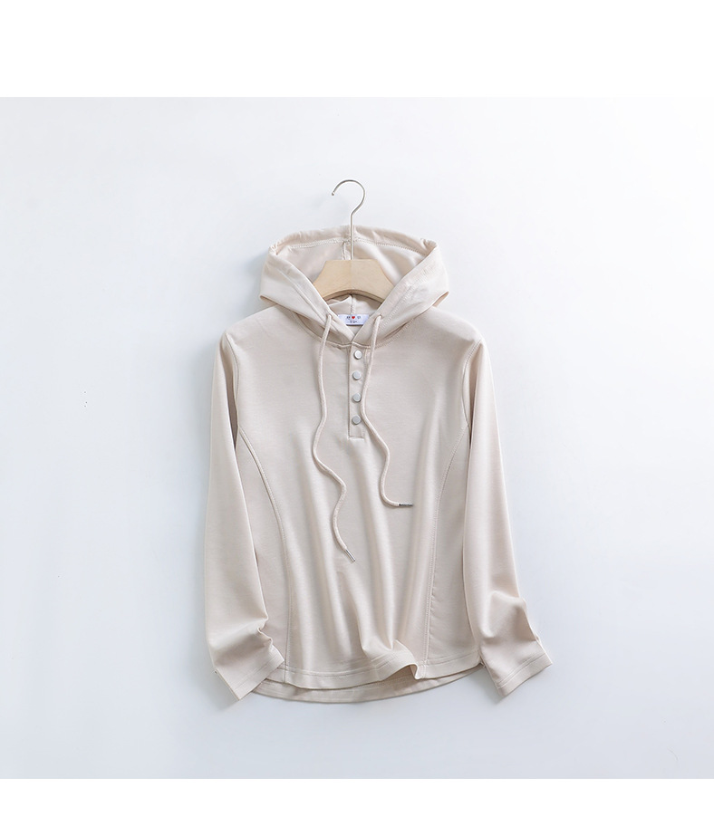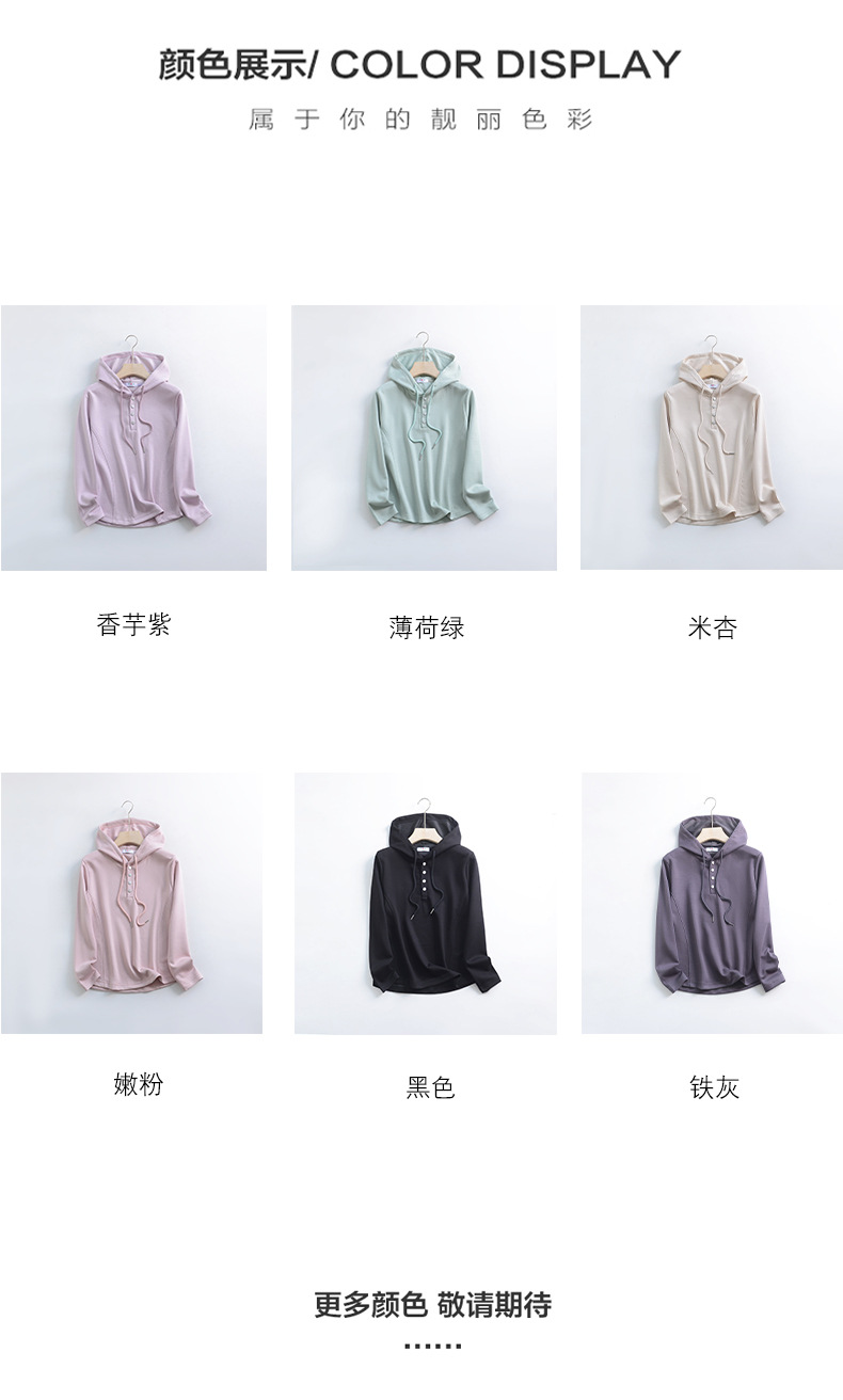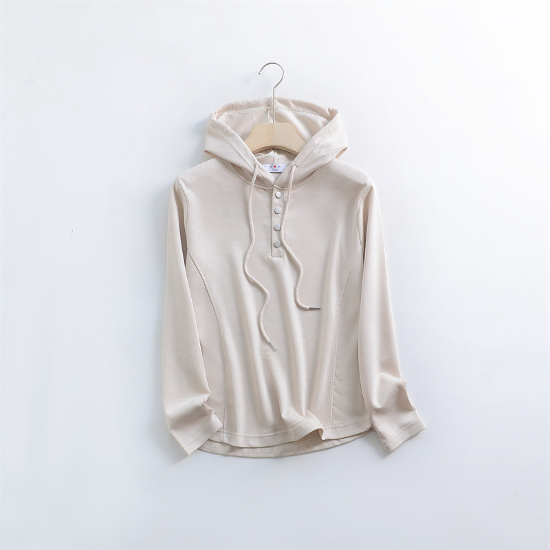 秋冬宽松连帽卫衣女新款外穿纽扣纯棉上衣大码内搭纯色帽衫休闲