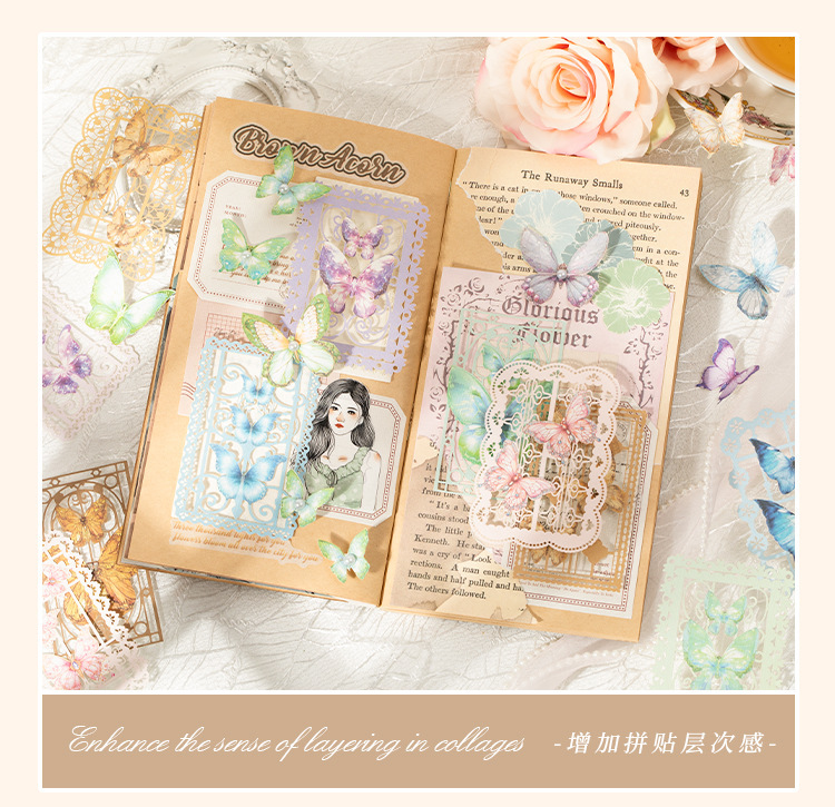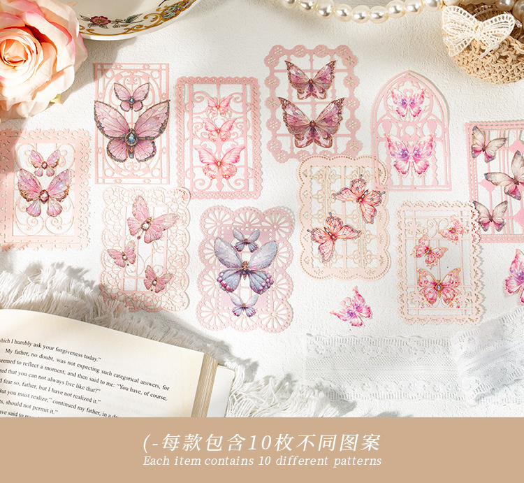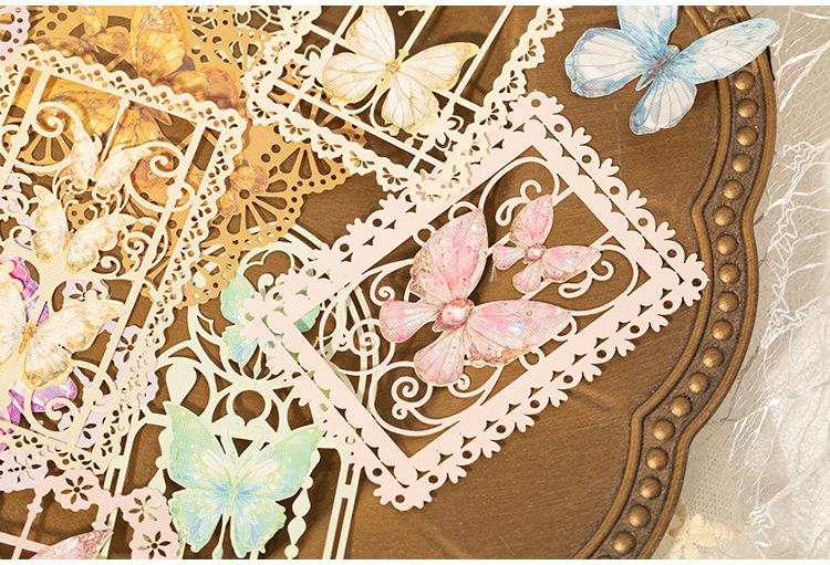 언어 레저 레이스 중공 소재 종이 꿈 나비 메모리 시퀀스 시리즈 바람 나비 손 계정 통증 가방 DIY 장식 백킹