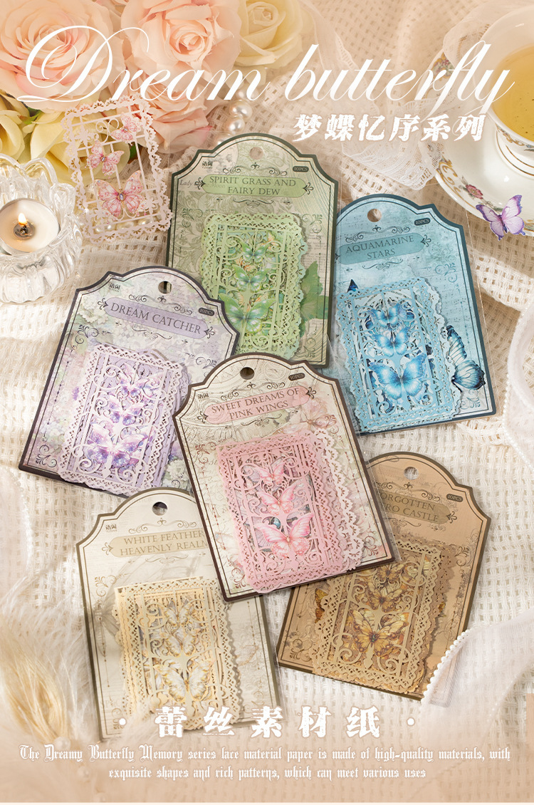 언어 레저 레이스 중공 소재 종이 꿈 나비 메모리 시퀀스 시리즈 바람 나비 손 계정 통증 가방 DIY 장식 백킹스토어 가기