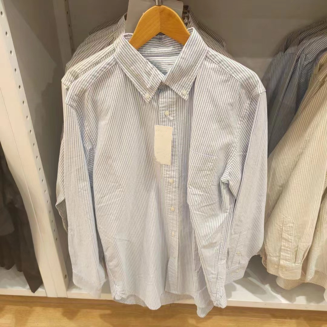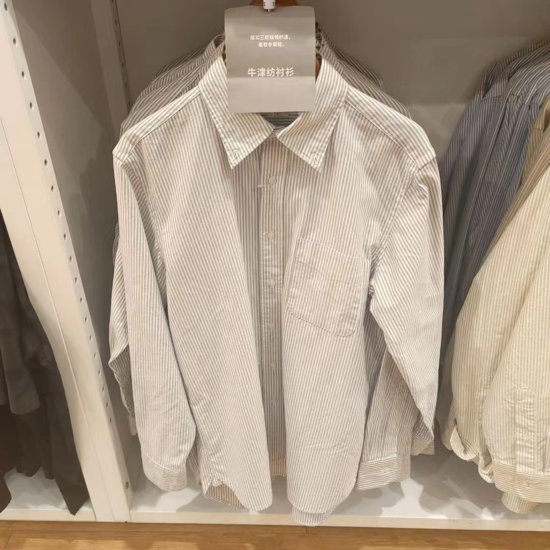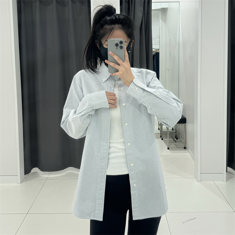 24 싱글 가을 면화 남성과 여성의 느슨한 옥스포드 긴팔 스트라이프 셔츠 Y462367 467442