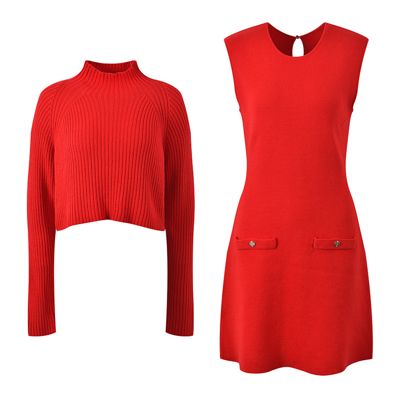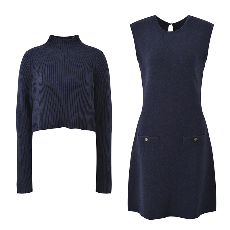 프랑스 스타일의 우아한 백 스플릿 니트 스웨터 풀오버 민소매 탱크 스커트 슬림 핏 슬리밍 투피스 세트스토어 가기