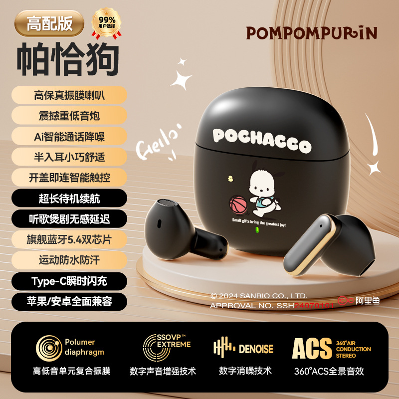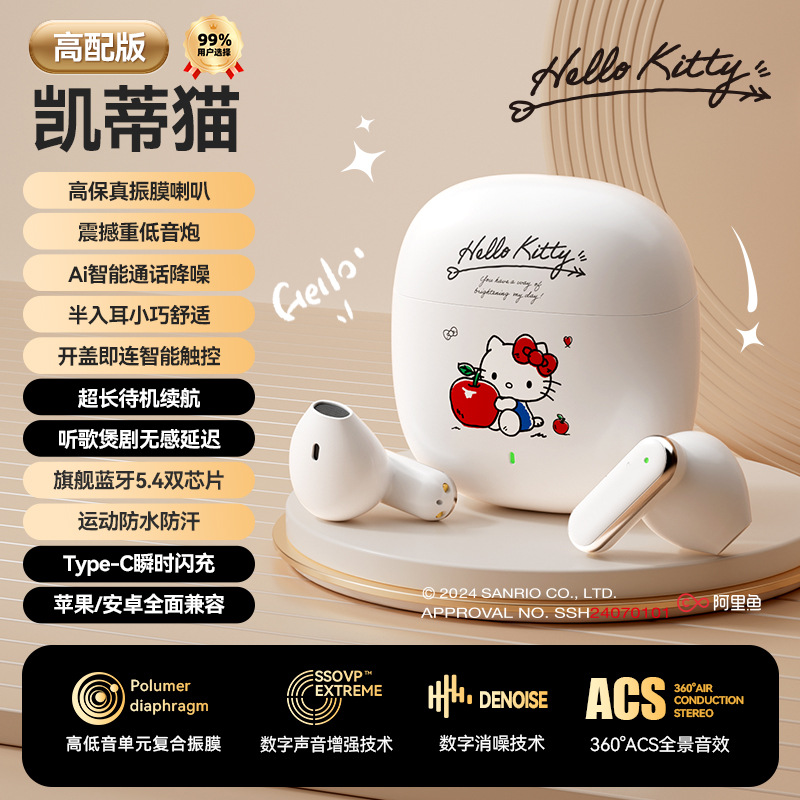 새로운 산리오 블루투스 헤드셋 Q3 무선 만화 미니 귀여운 소음 감소 스포츠 반 귀 긴 내구성스토어 가기