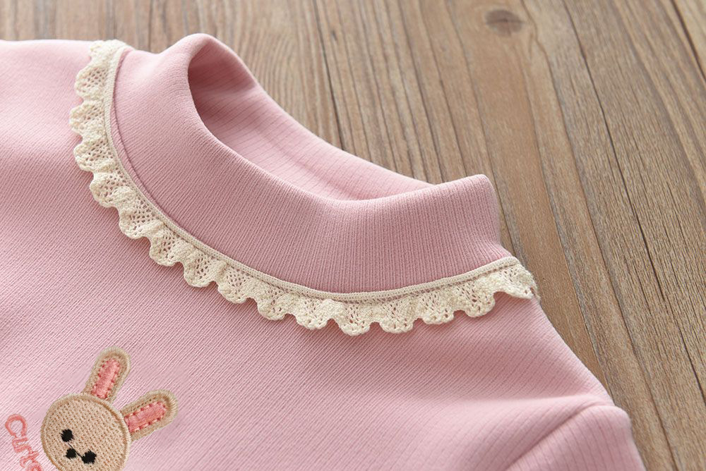 소녀 기모 바닥 셔츠 2024 가을과 겨울 새로운 아기 소녀 레이스 따뜻한 티셔츠 어린이 조커 벨벳 스웨터 도매스토어 가기