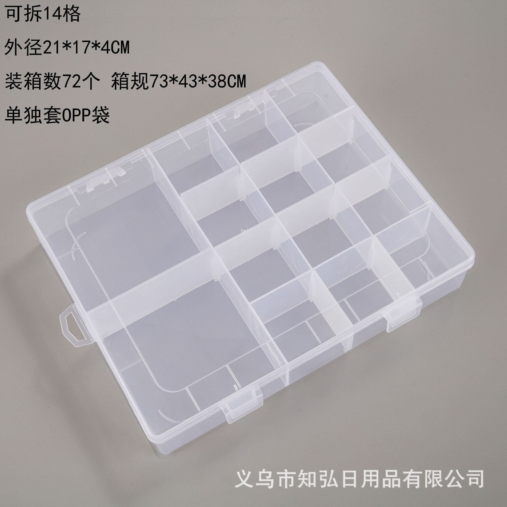• 56개의 그리드가 있는 14줄(투명) 외경: 21.1*17.5*2.7cm