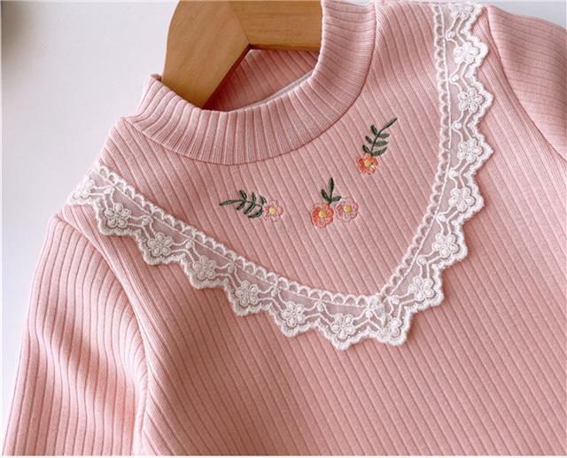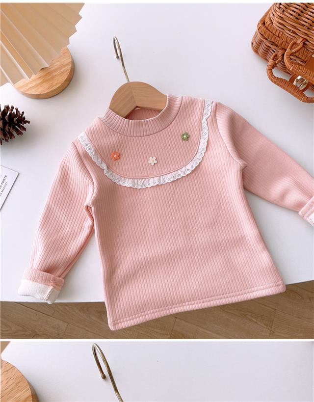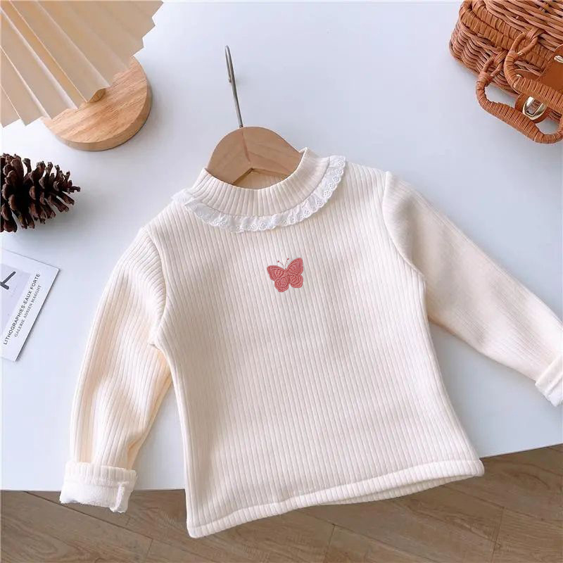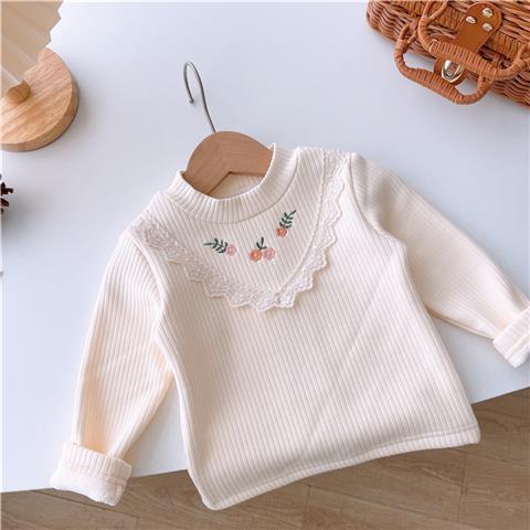 소녀의 서양식 원피스 벨벳베이스 셔츠 가을과 겨울 아기의 올 매치 기모 어린이 따뜻한 내부 티셔츠 트렌디스토어 가기