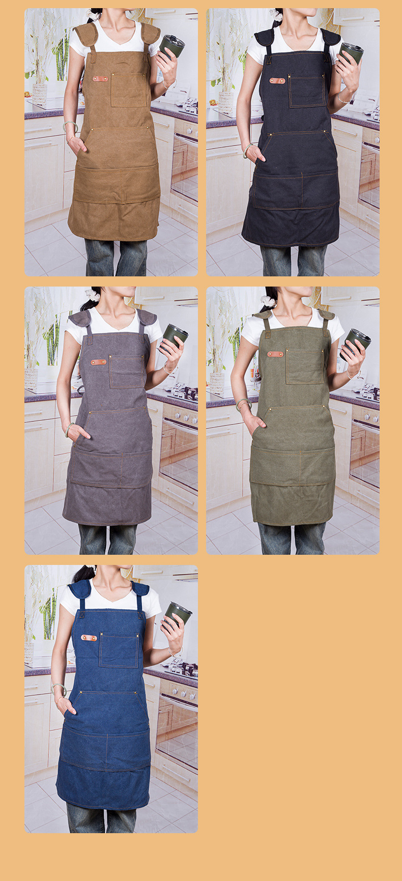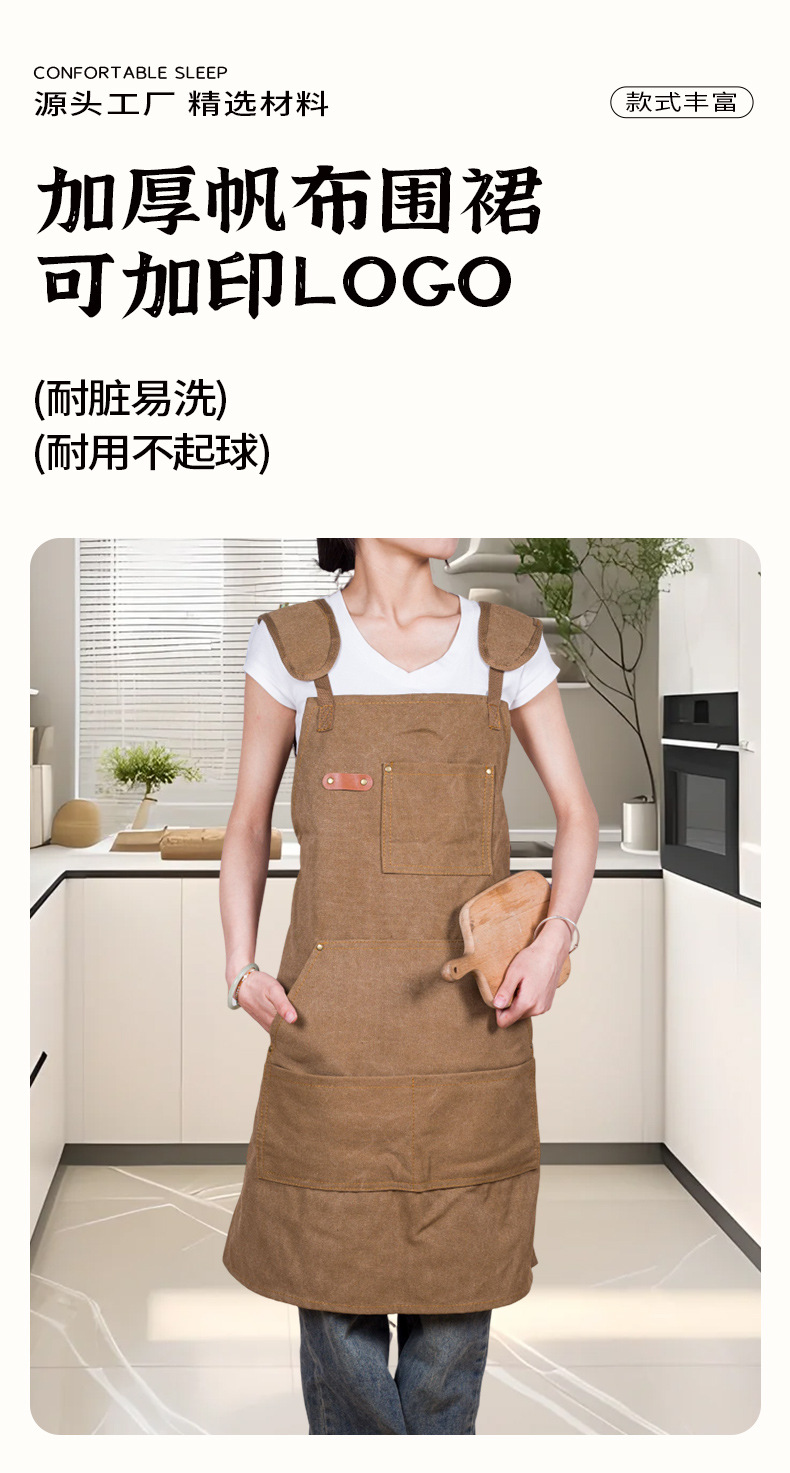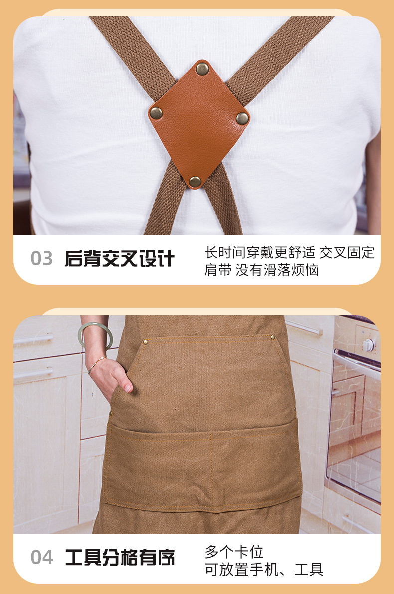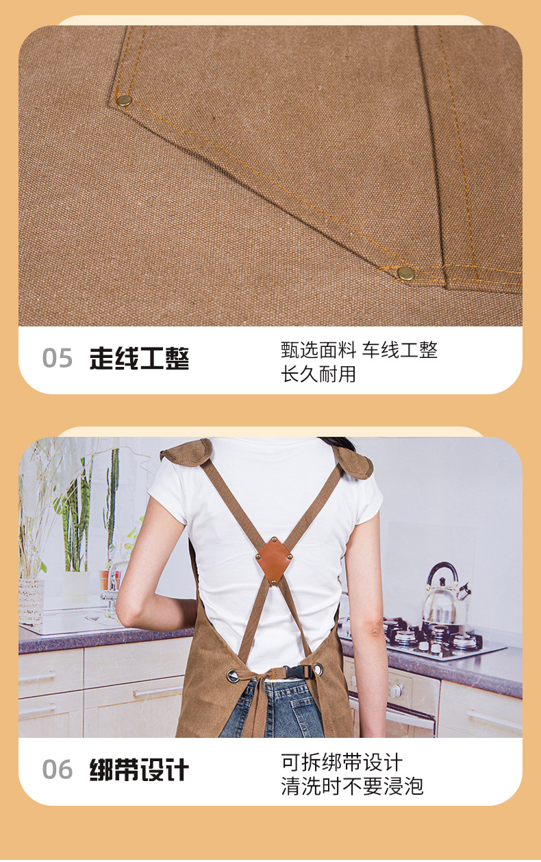 캔버스 앞치마 맞춤 로고 인쇄 식품 특수 우유 차 가게 꽃 가게 커피 핫 다이어 작업 옷 여성