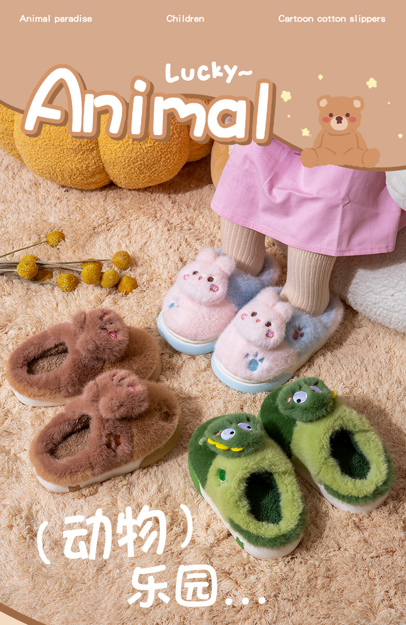 남보완 어린이 개구리 면화 슬리퍼 겨울 소년 기모 따뜻한 실내 홈 EVA 부드러운 바닥 바오터우 슬리퍼스토어 가기