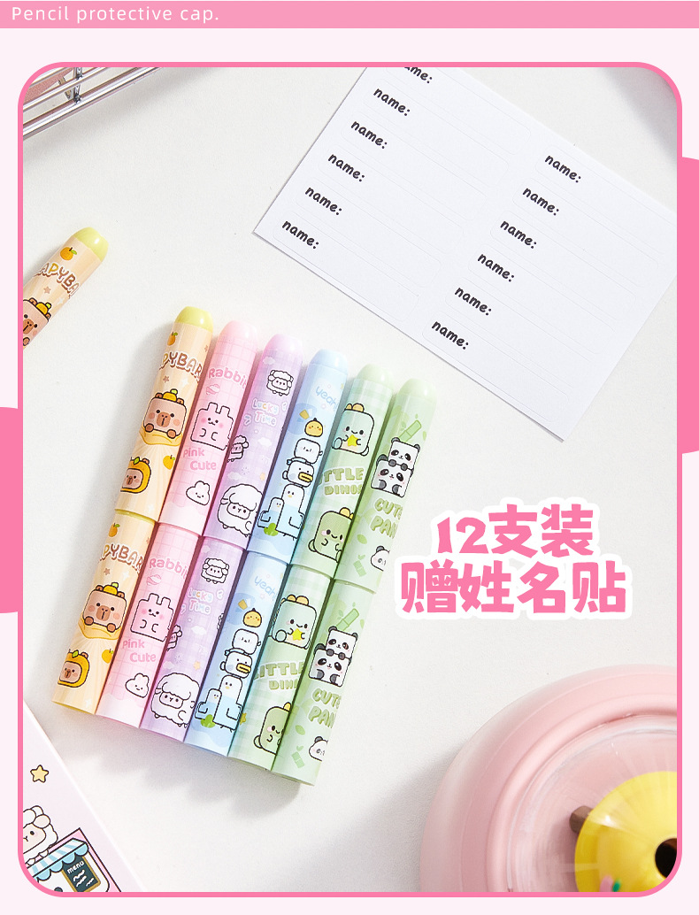 초등학교 학생을위한 만화 연필 모자 유치원 어린이를위한 연필 케이스 펜 연장 장치 Orthotic 장치를 보유하기위한 보호 케이스스토어 가기