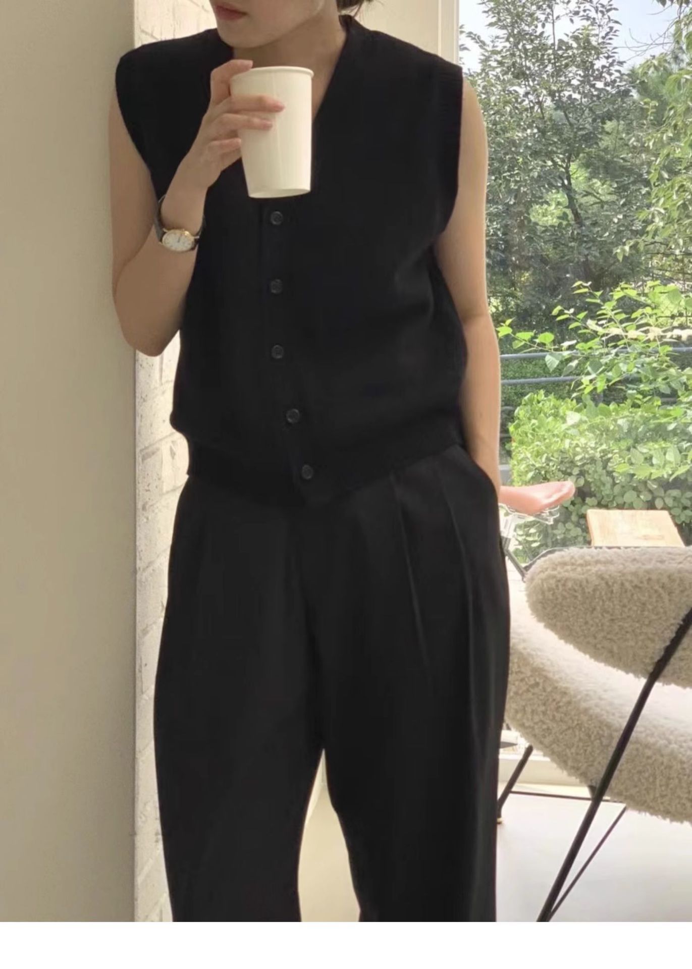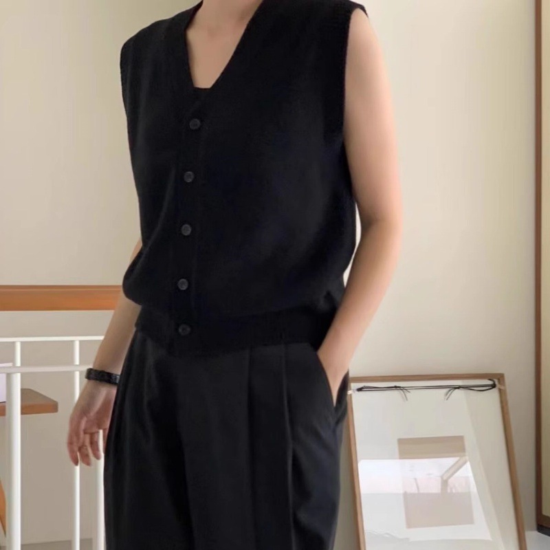 V-Neck 100 양모 카디건 조끼 여성의 가을 및 겨울 단색 조끼 니트 스웨터 민소매 스태킹 유럽 탑스토어 가기