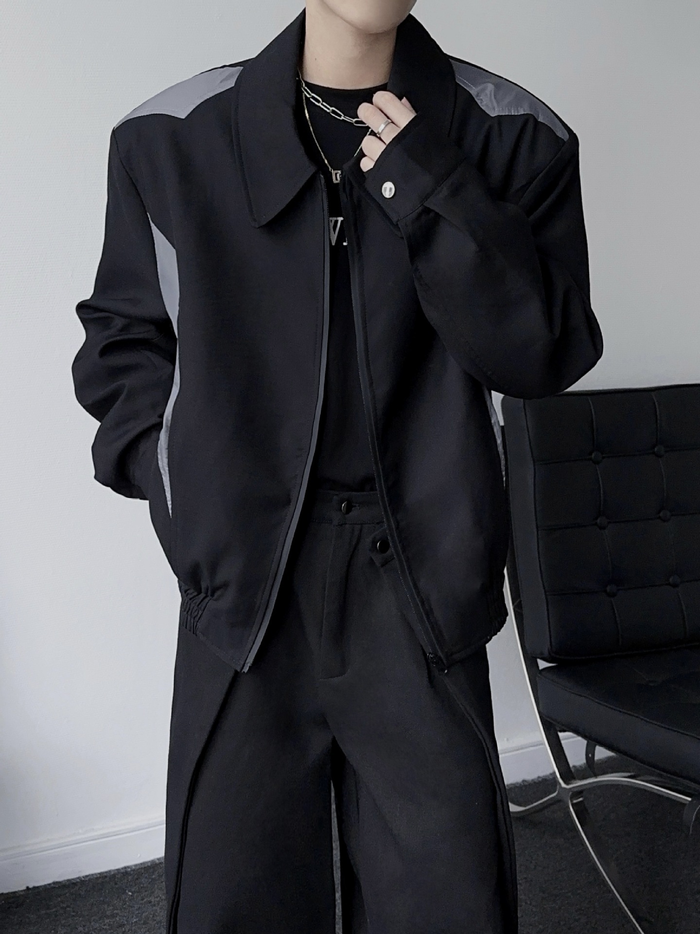 디아블로 작은 옷깃 재킷 코트 2024 가을 남성과 여성의 캐주얼 루즈 와이드 숄더 샵 핸섬 긴팔 탑