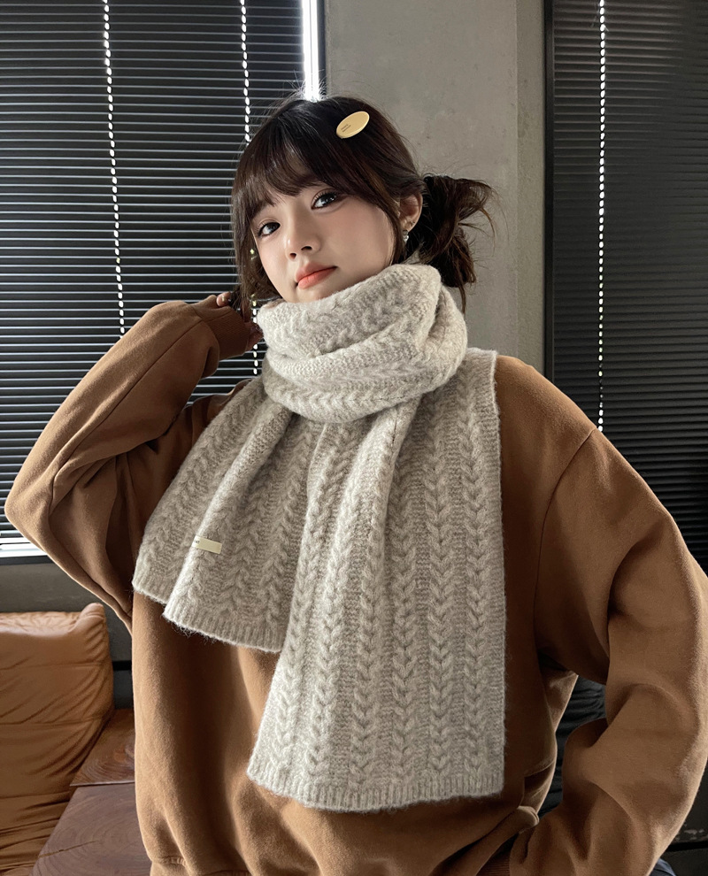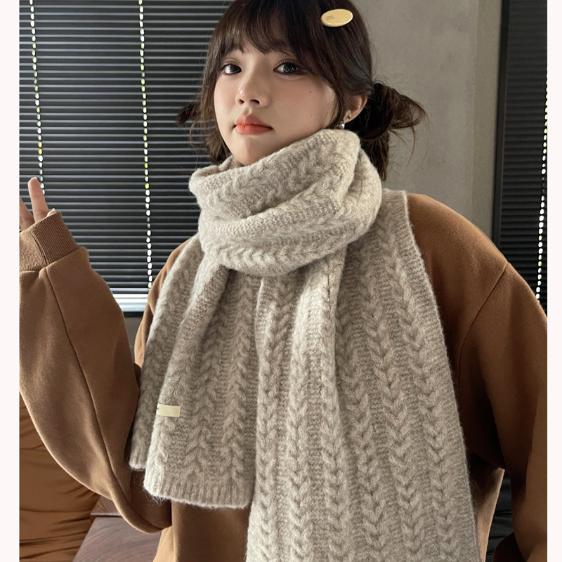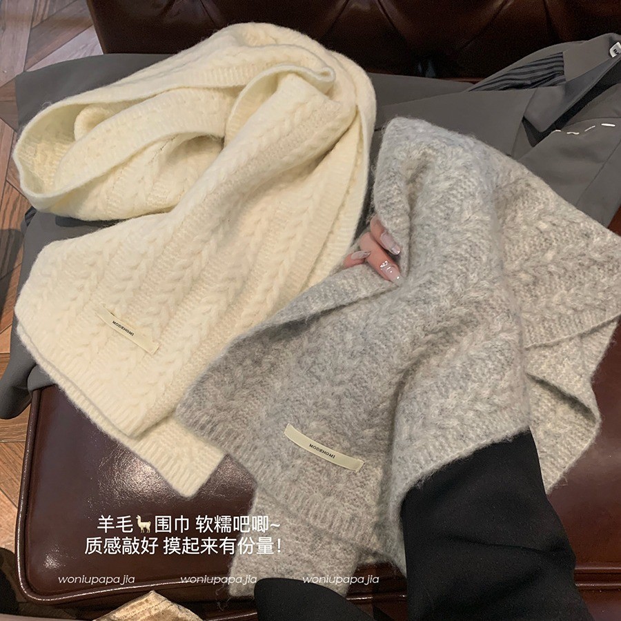 하이 퀄리티 ~ 양모 블렌드 니트 트위스트 솔리드 컬러 두꺼운 소프트 왁스 스카프 가을 겨울 여자 올 매치 커플 스카프스토어 가기