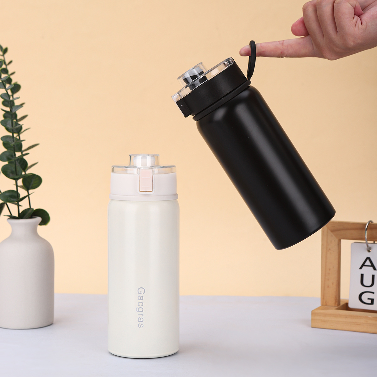 비 인쇄 평면 304 스테인레스 스틸 보온병 컵 이중 진공 대용량 커피 컵 자동차 휴대용 비 인쇄 컵