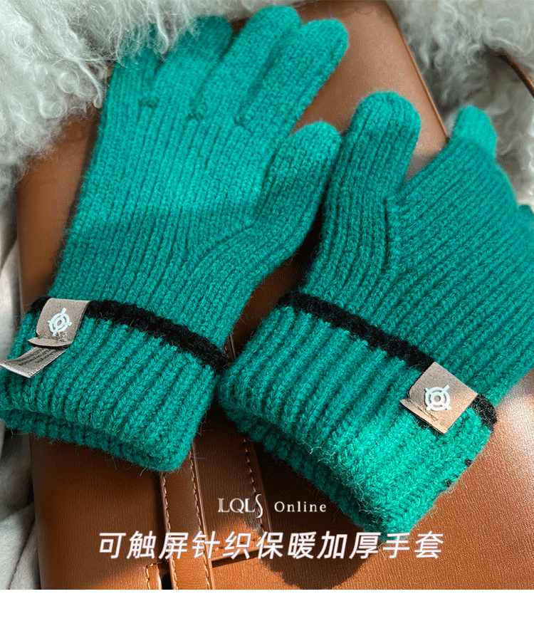 스티칭 줄무늬 양모 니트 솔리드 컬러 장갑 라벨링 핑거 노출 손가락 터치 스크린 올 매치 가을과 겨울 따뜻한 승마
