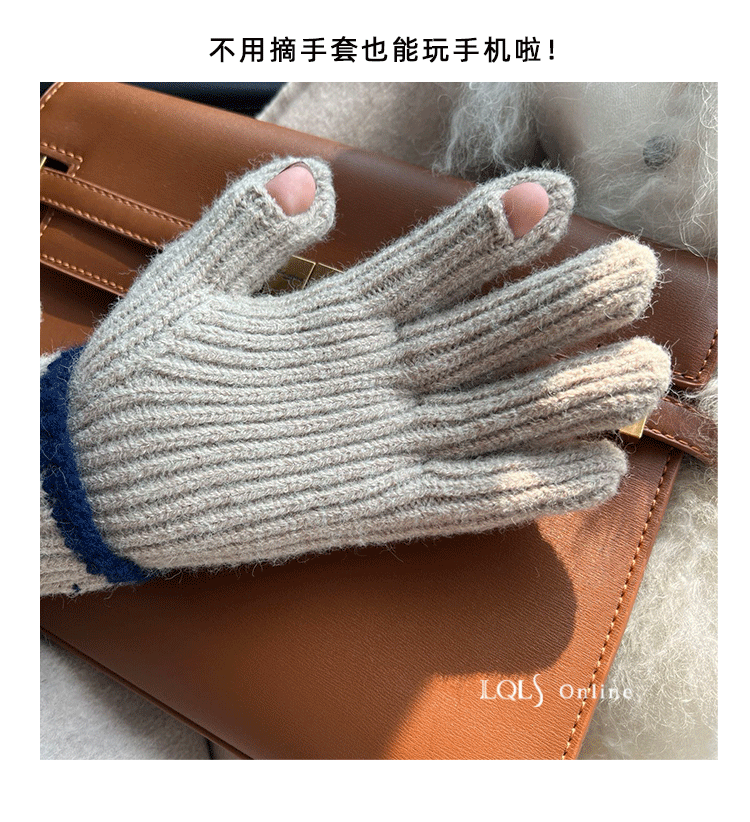 스티칭 줄무늬 양모 니트 솔리드 컬러 장갑 라벨링 핑거 노출 손가락 터치 스크린 올 매치 가을과 겨울 따뜻한 승마스토어 가기