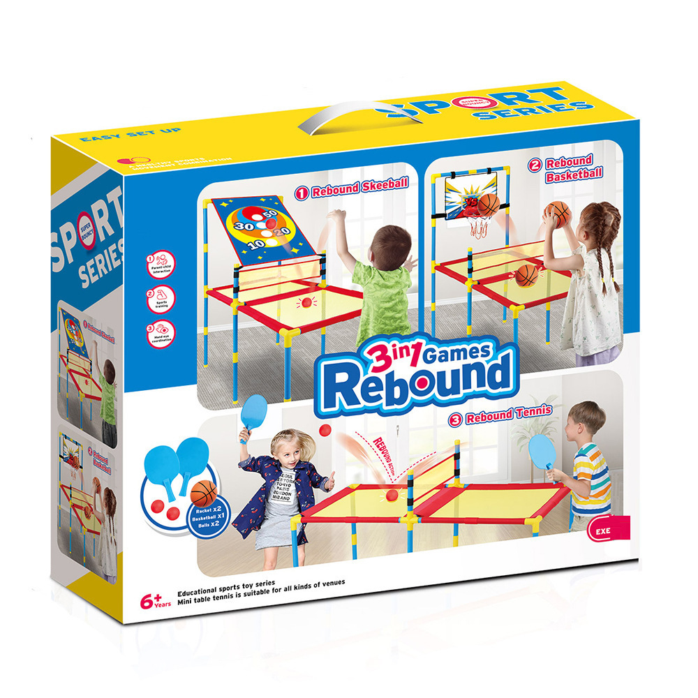 新品3合1 DIY乒乓球桌儿童室内篮球运动休闲互动亲子投掷玩具