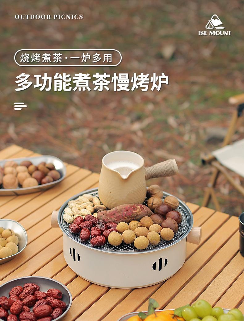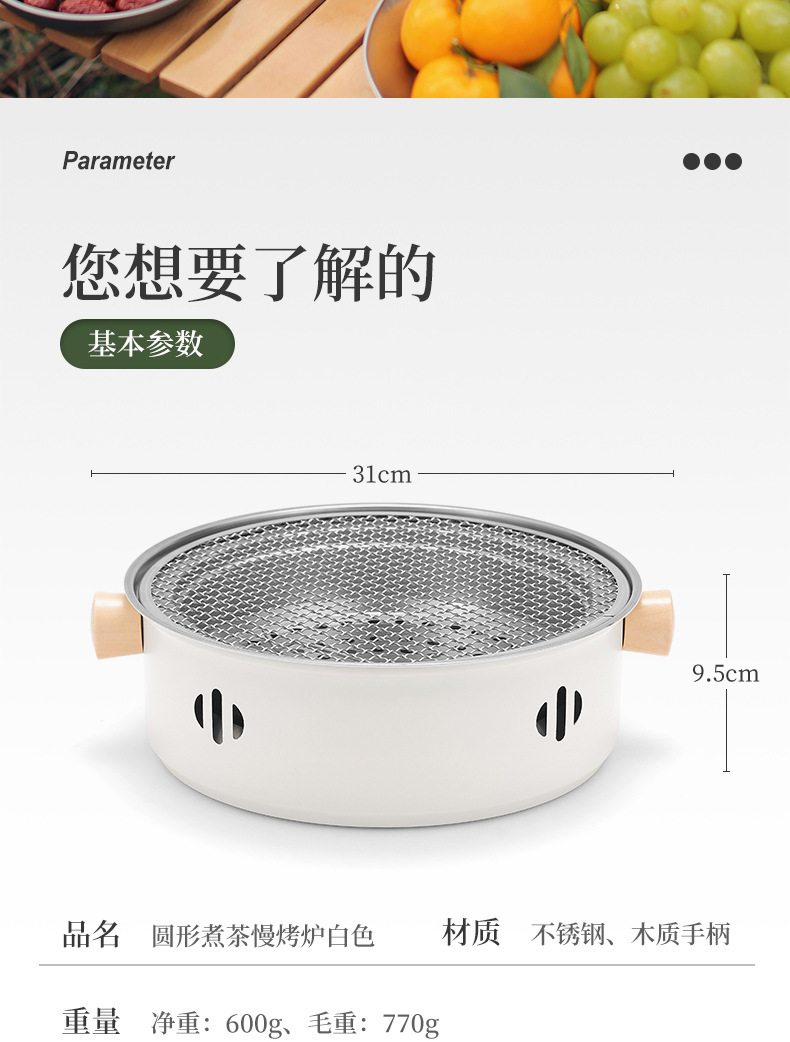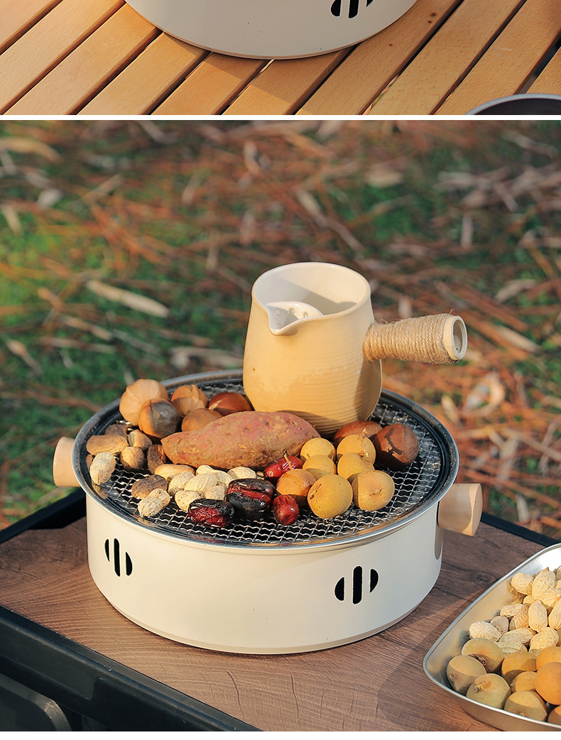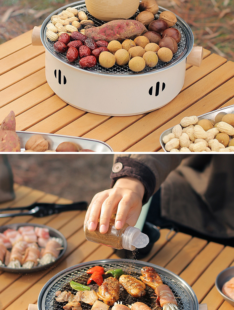야외 스테인레스 스틸 바베큐 스토브 캠핑 숯 스토브 휴대용 라운드 티 쿠커 가구 분할 형 바베큐 스토브