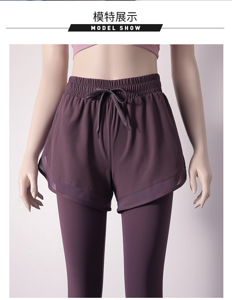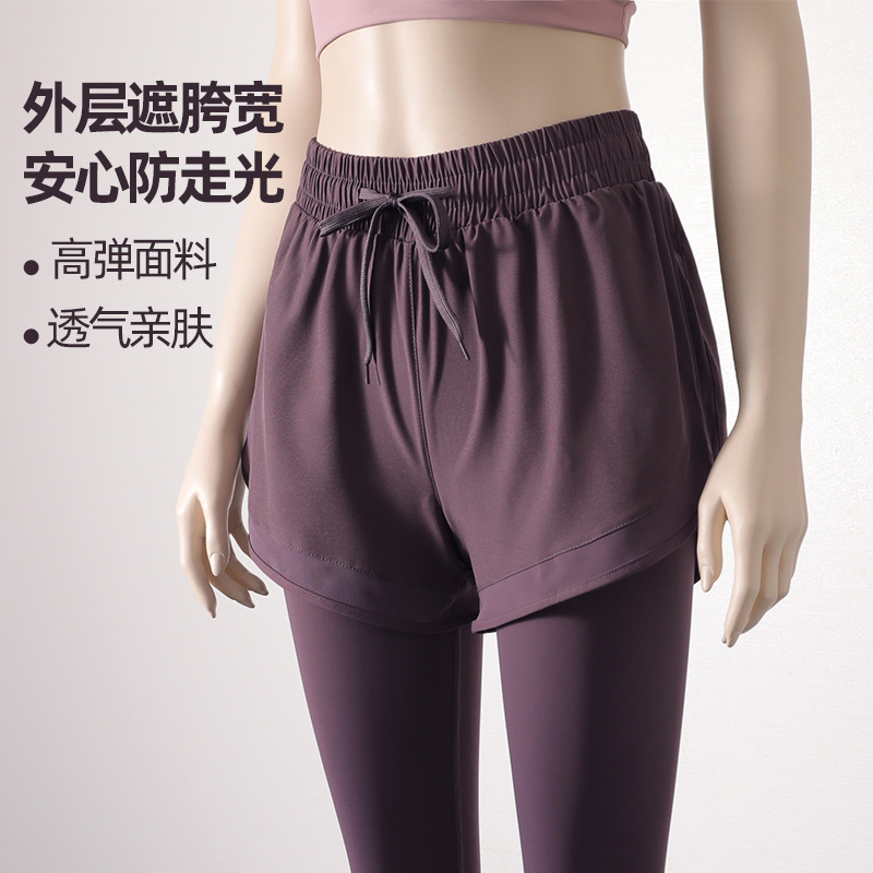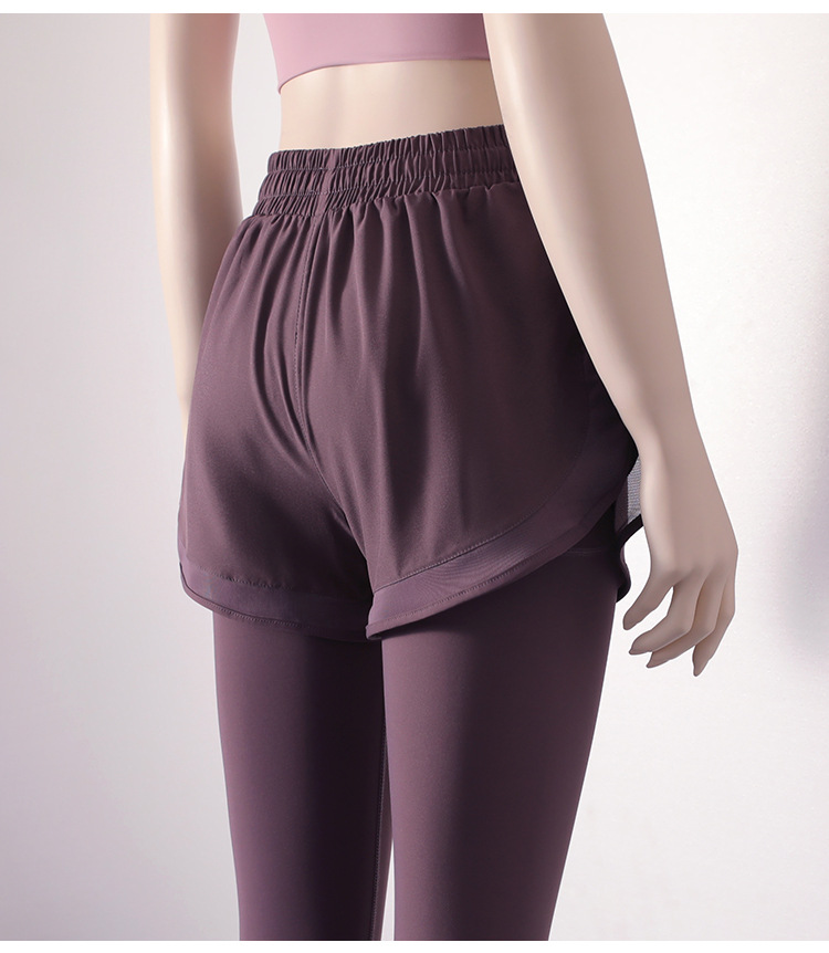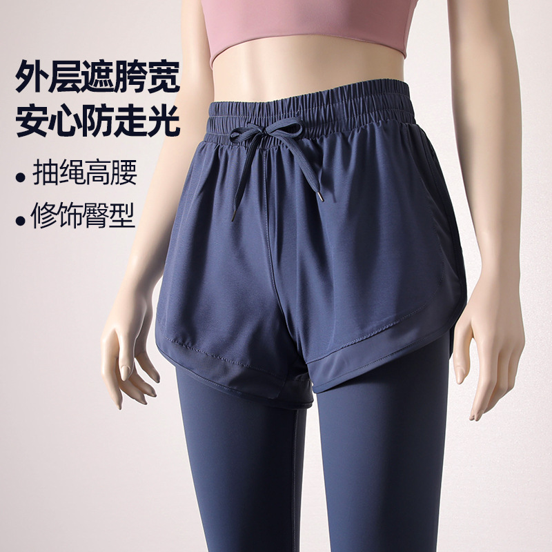 스포츠 피트니스 바지 여성의 가짜 2 조각 외부 착용 높은 허리 꽉 스트레치 달리기 빠른 건조 훈련 9 점 요가 바지 가을스토어 가기
