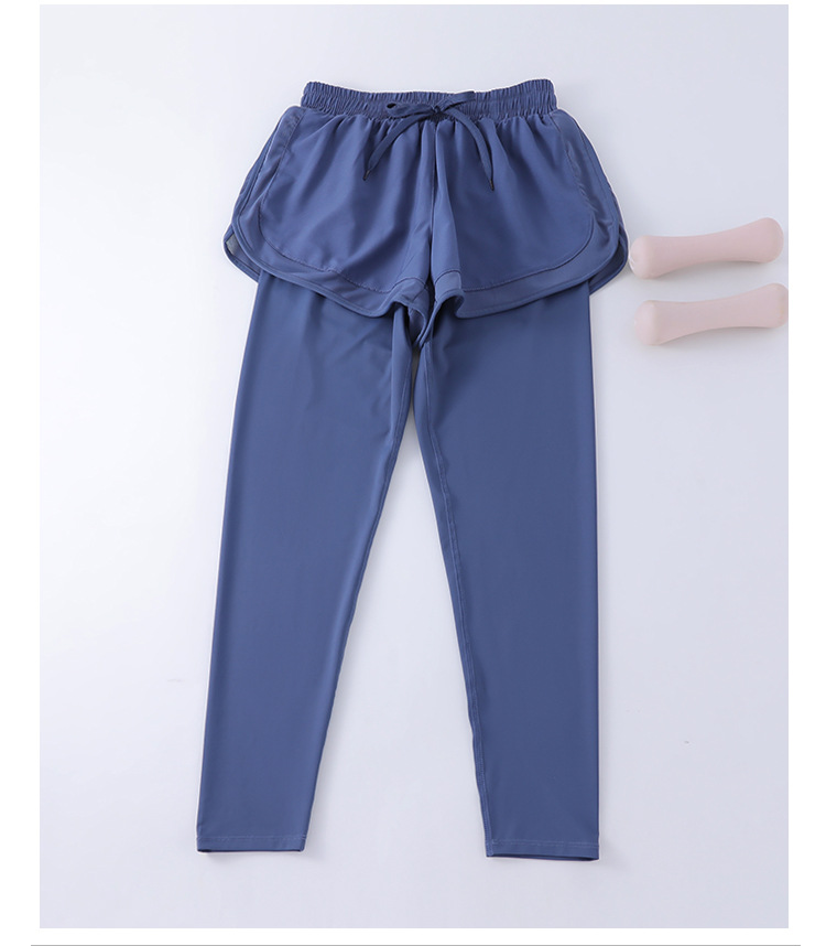 스포츠 피트니스 바지 여성의 가짜 2 조각 외부 착용 높은 허리 꽉 스트레치 달리기 빠른 건조 훈련 9 점 요가 바지 가을