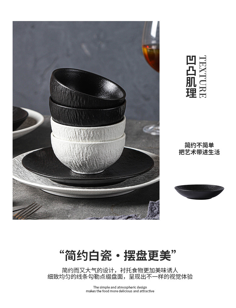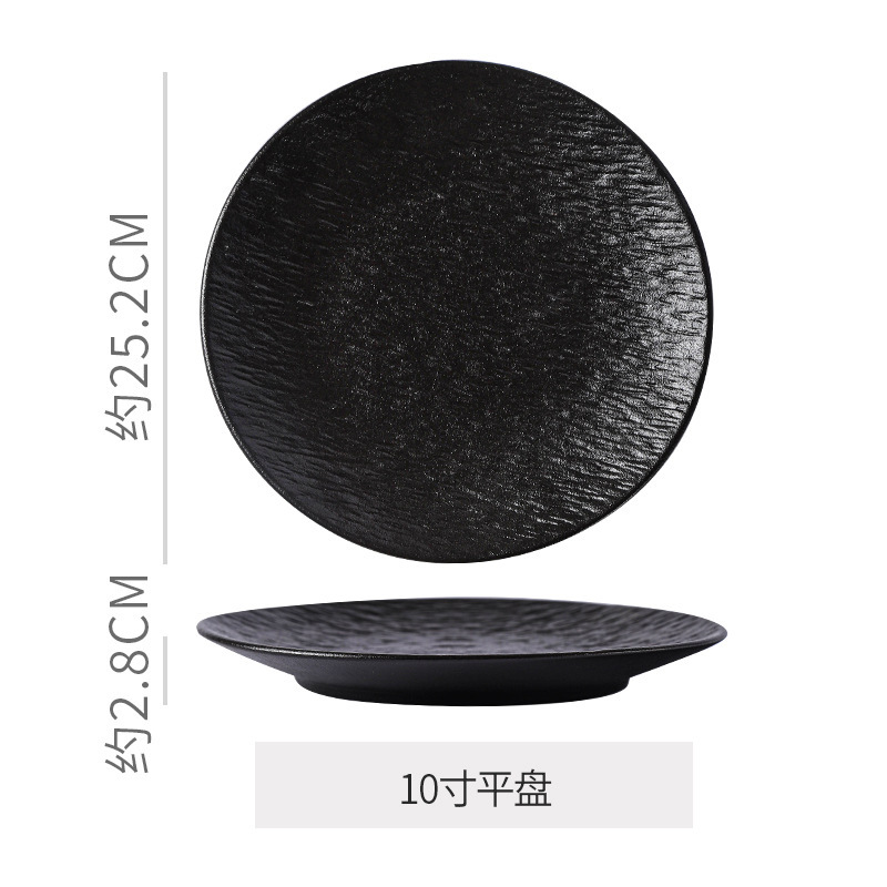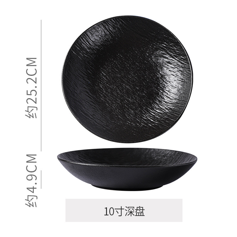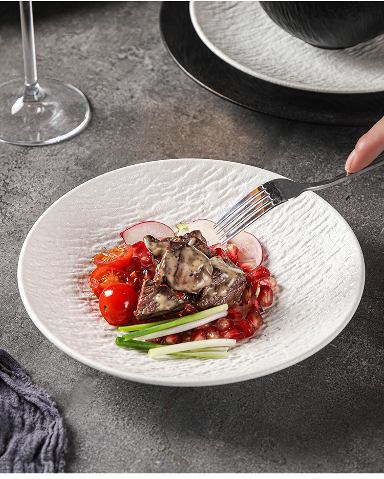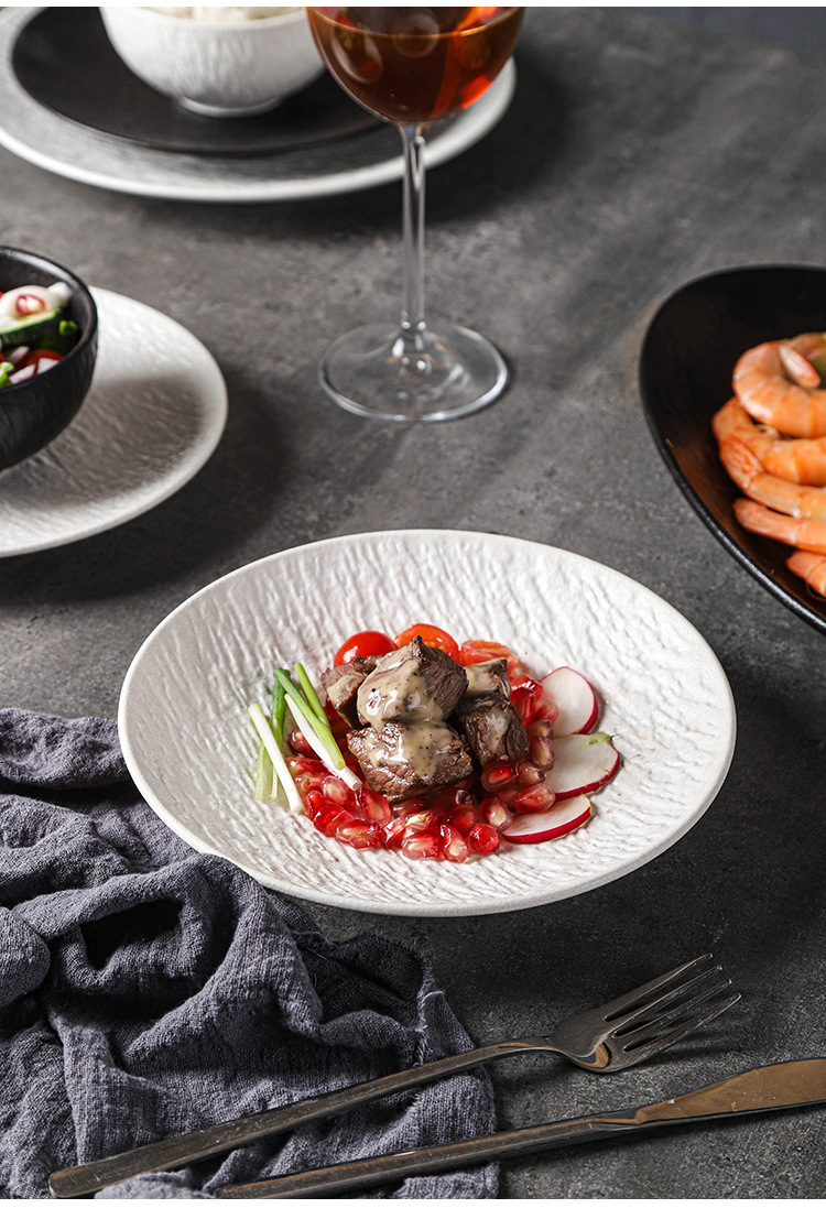 复古岩石纹陶瓷西餐盘汤盘鱼盘牛排菜盘磨砂高级感黑白餐具套装