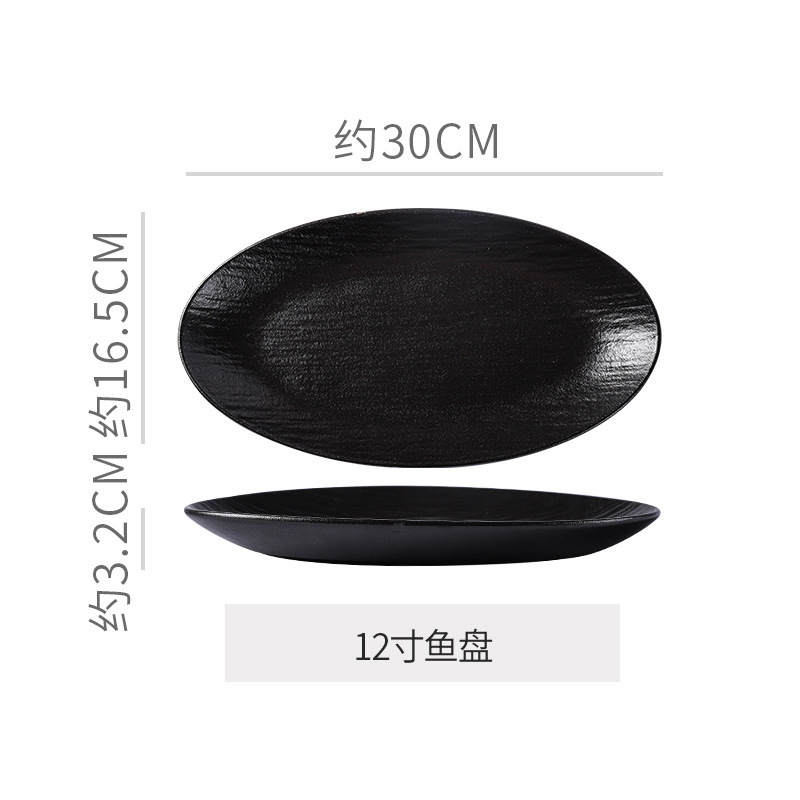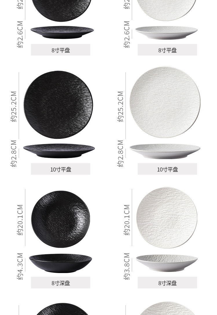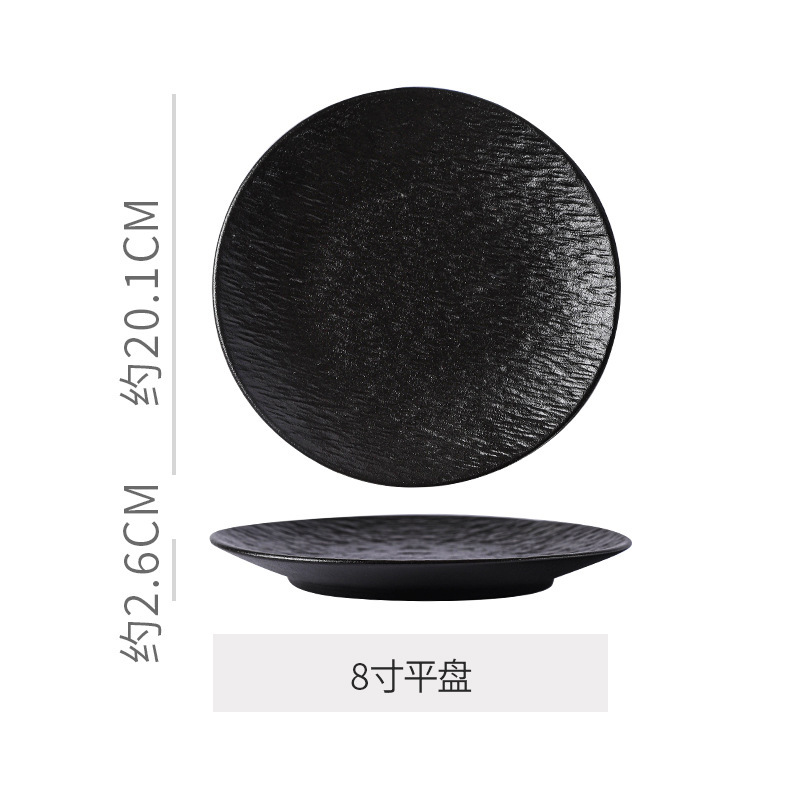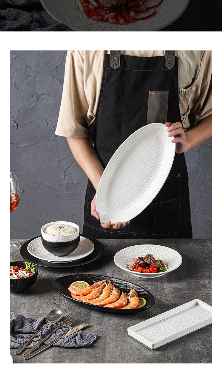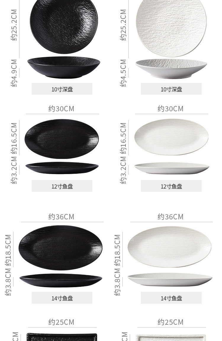 复古岩石纹陶瓷西餐盘汤盘鱼盘牛排菜盘磨砂高级感黑白餐具套装