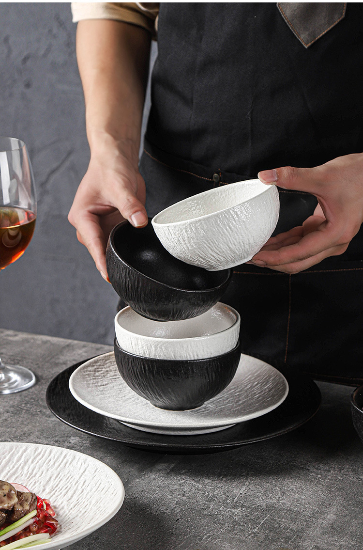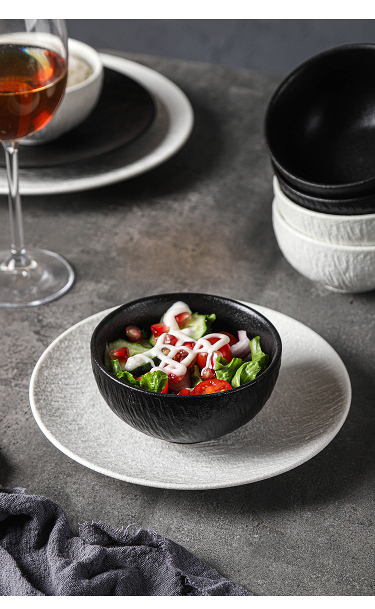 岩石纹理简约陶瓷西餐餐具黑白碗盘碟餐厅酒店高级摆盘水果沙拉碗