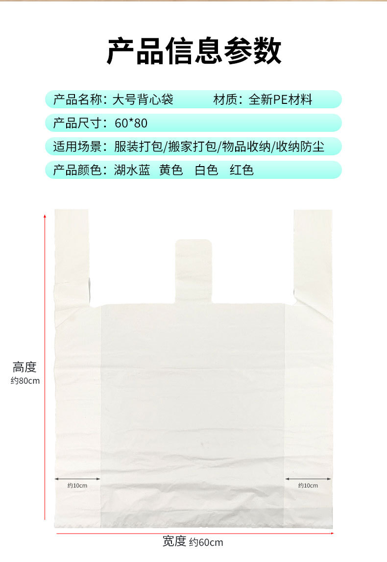 슈퍼마켓을 위한 흰색 대형 플라스틱 조끼 가방 두꺼운 의류 전자 상거래 포장 핸드백 가방 비닐 봉투 도매