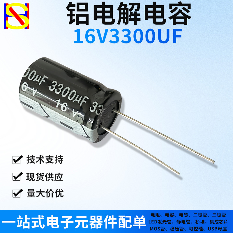 16V3300UF 직선 플러그인 알루미늄 전해 커패시터 원 스톱 전자 부품 단일 블랙/고주파스토어 가기