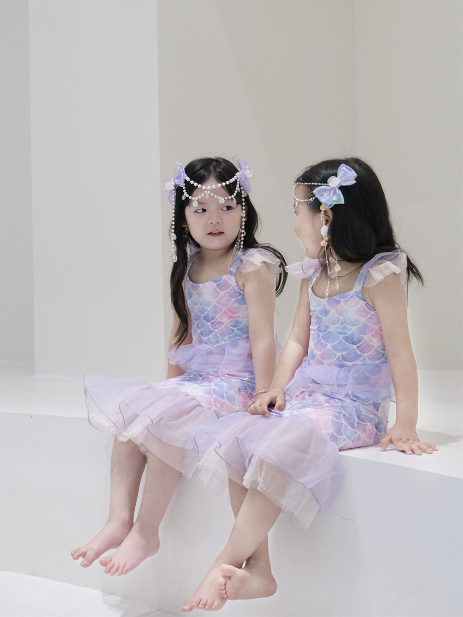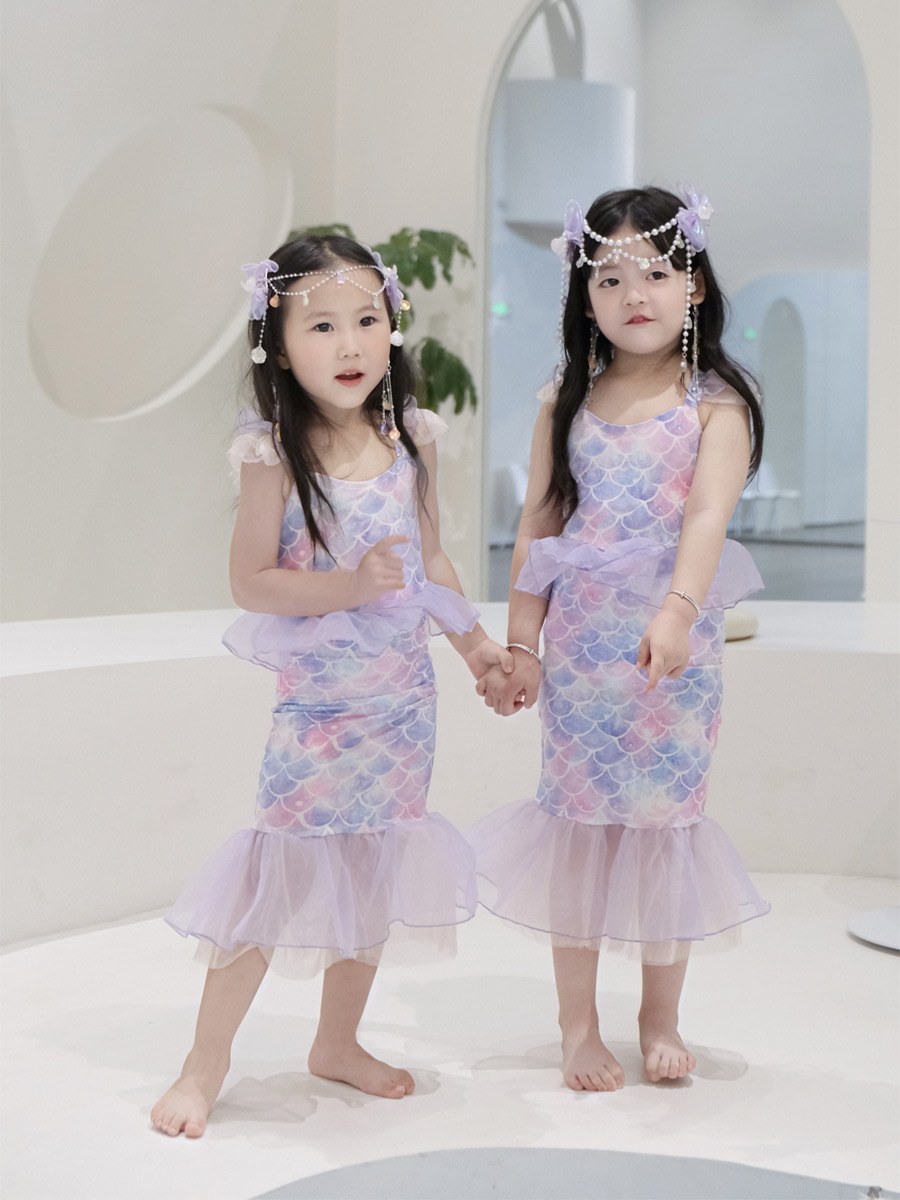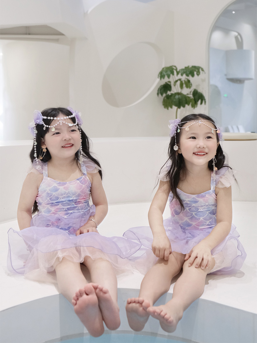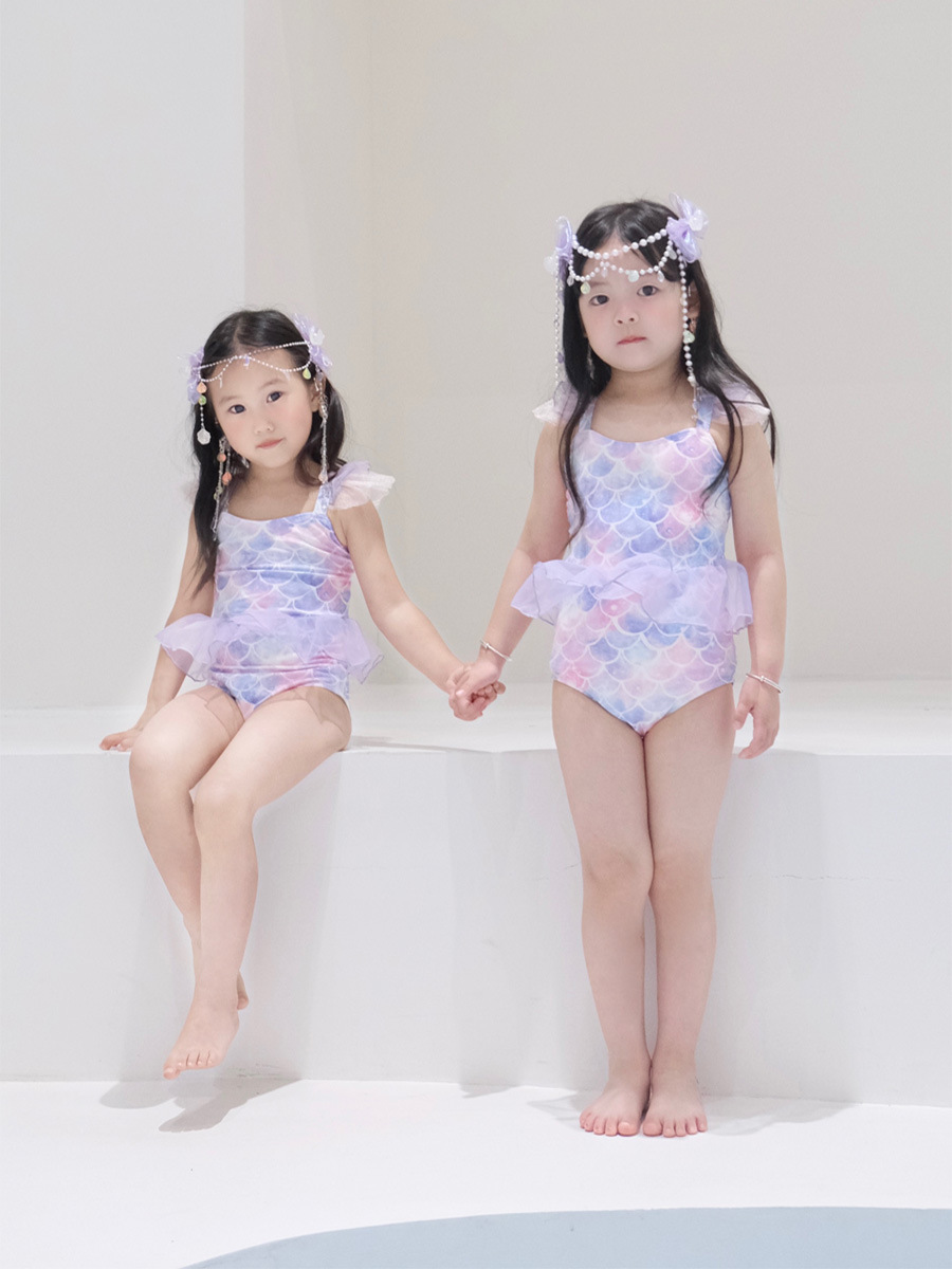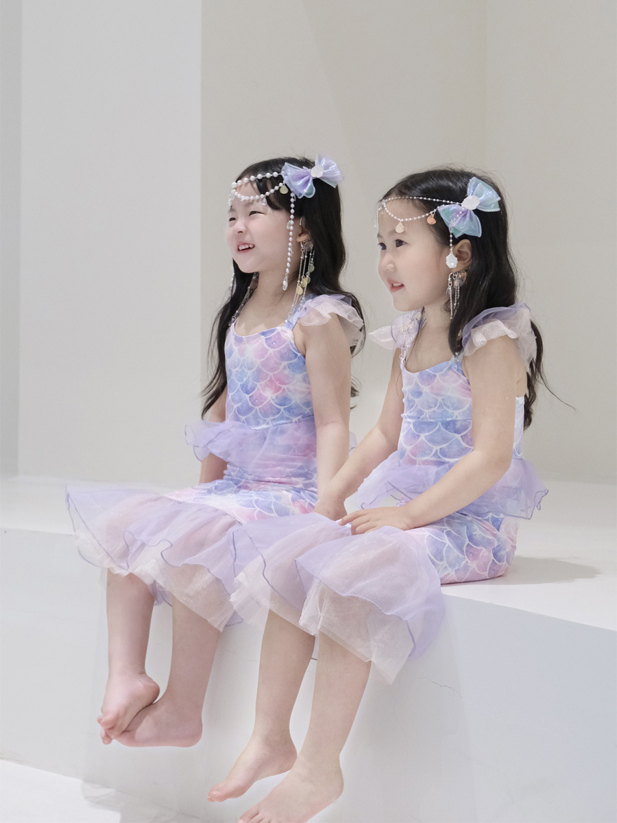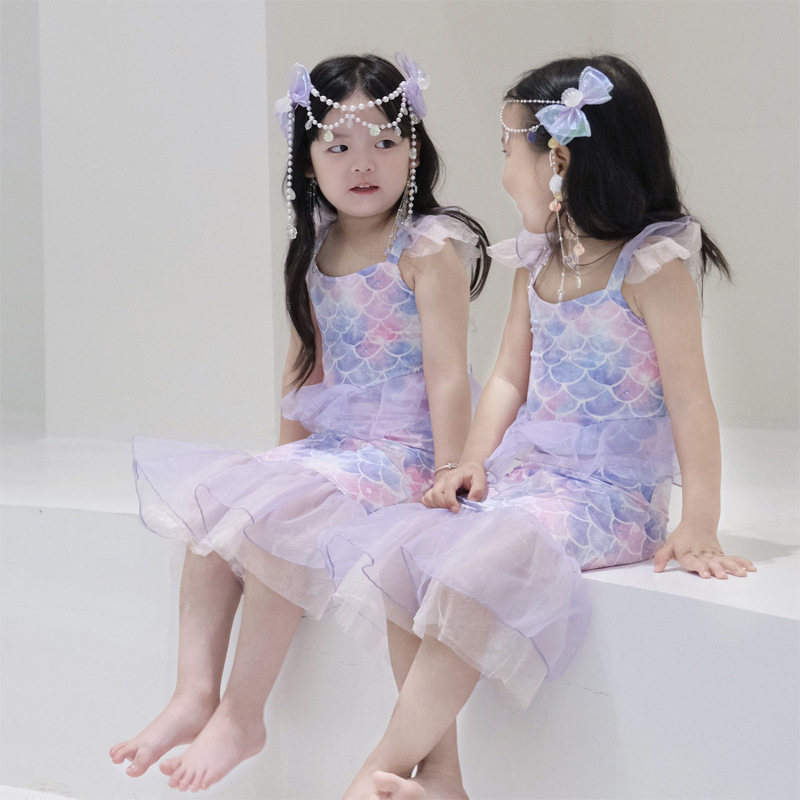여아 수영복 속건성 해변 휴가 비치 인어 원피스 수영복 세트 소녀 공주풍 패셔너블스토어 가기