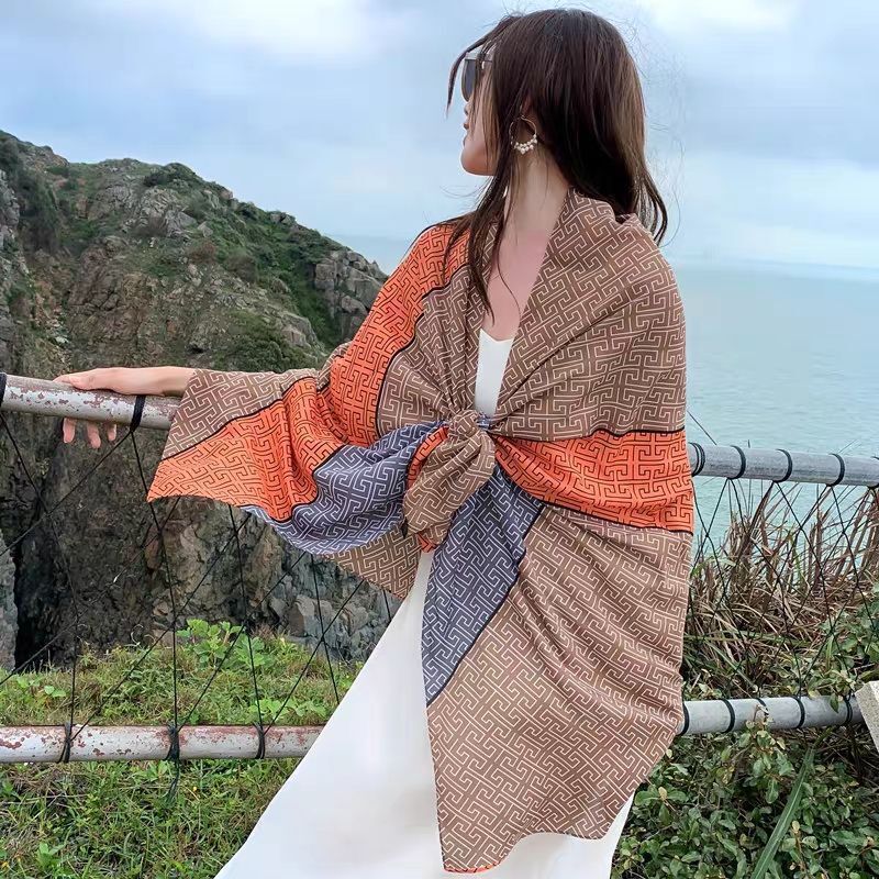 180x75 한국 버전의 봄과 여름 새로운면 및 린넨 스카프 얇은 실키 숄 여행 선 스크린 비치 스카프 여성용 스카프스토어 가기