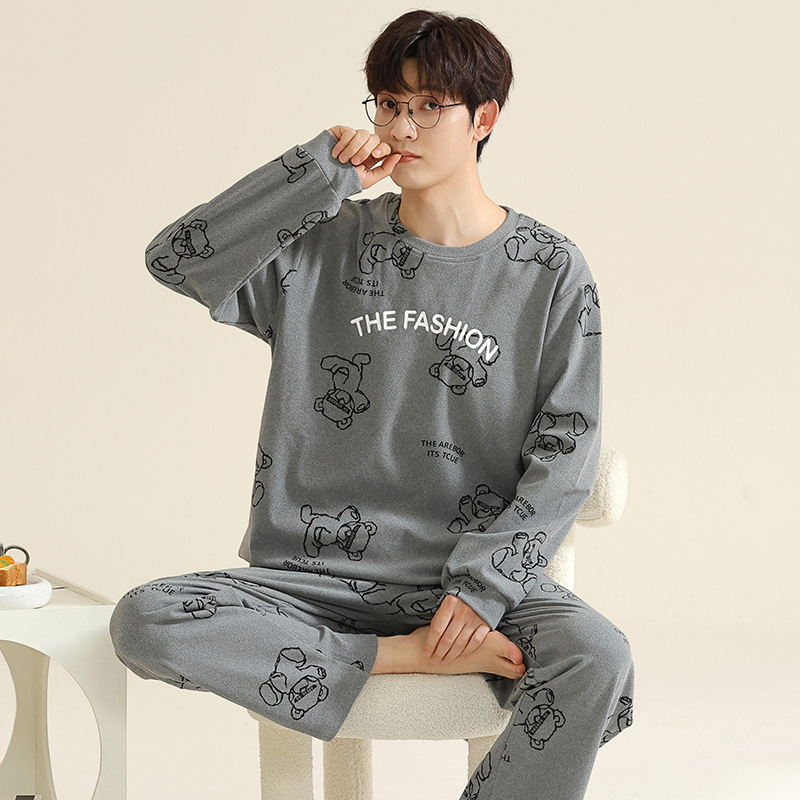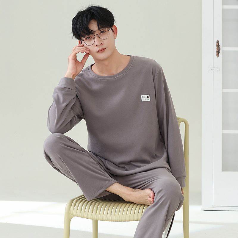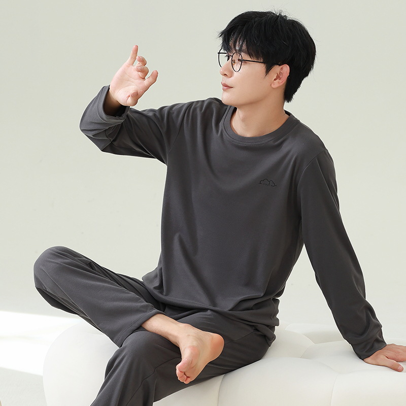 따뜻한 열 저장 따뜻한 잠금 커플 파자마 남성 및 여성의 가을 및 겨울 두꺼운 기모 긴 소매 홈 의류