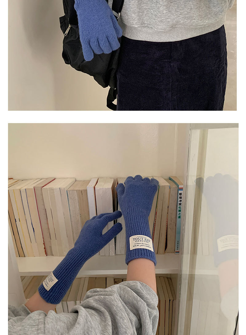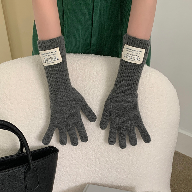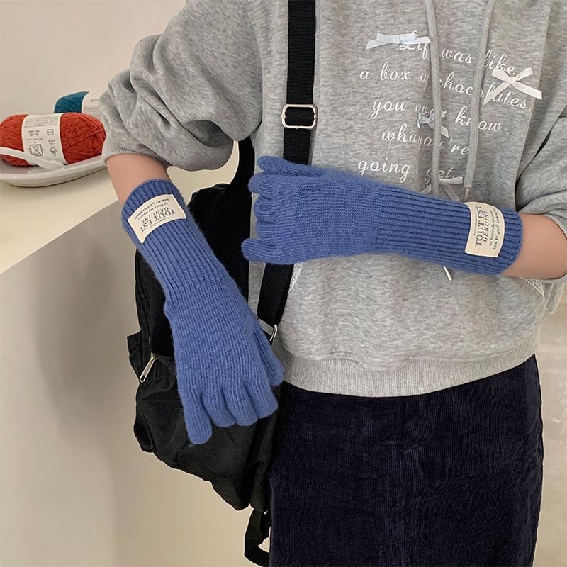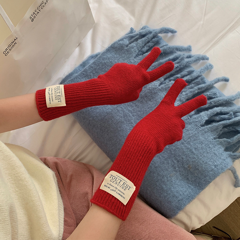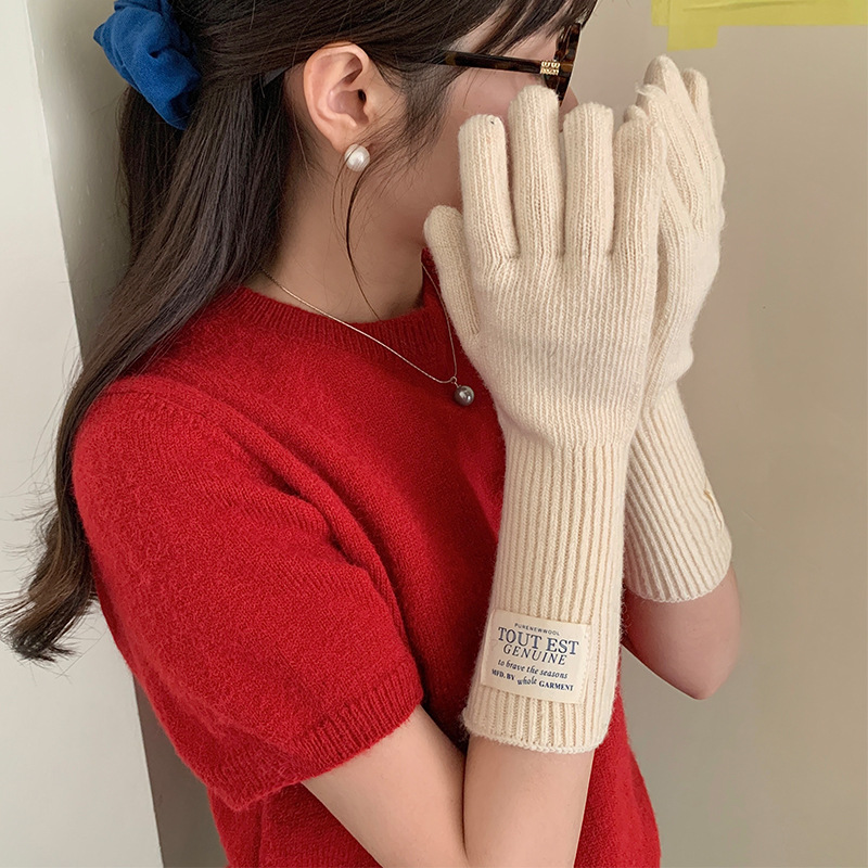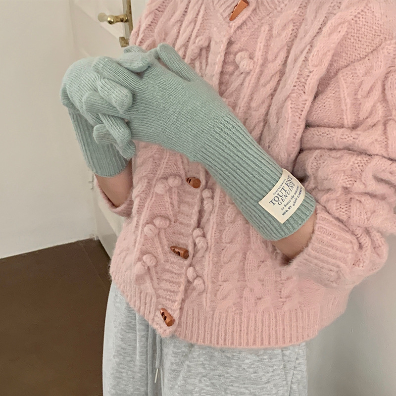 단색 양모 니트 장갑 여성의 연장 한국식 단색 가을과 겨울 방한 따뜻한 손가락 누설 터치 스크린 남성용 승마