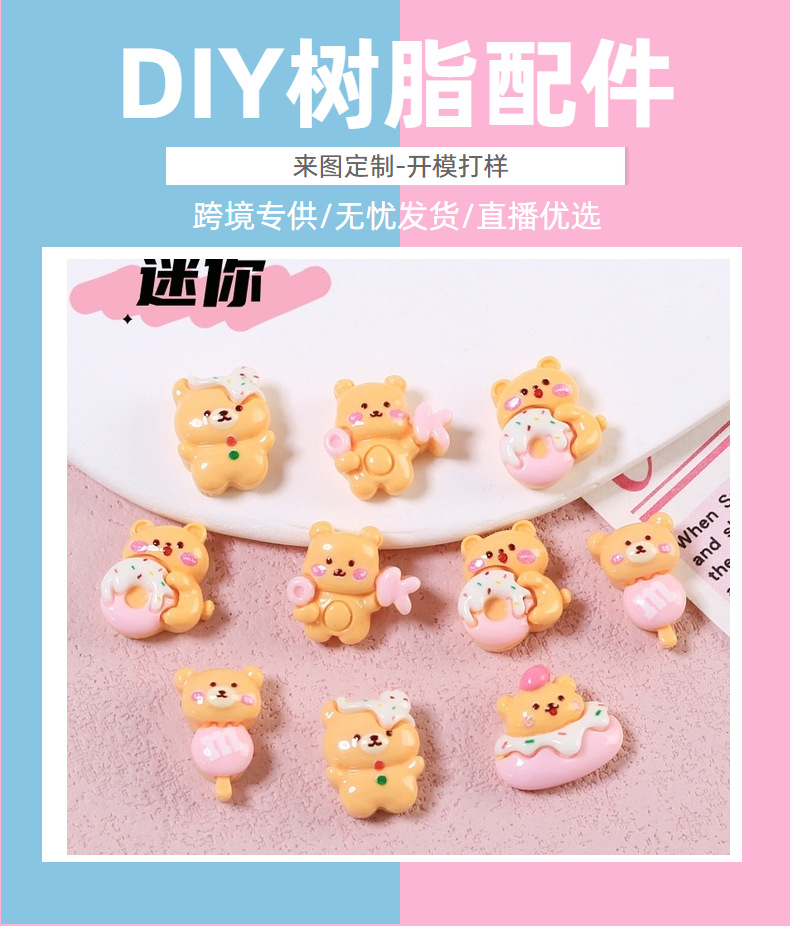 수지 액세서리 크림 접착제 수제 DIY 구멍 신발 버클 액세서리 헤어 핀 만화 미니 베어 케이크 음식 놀이스토어 가기