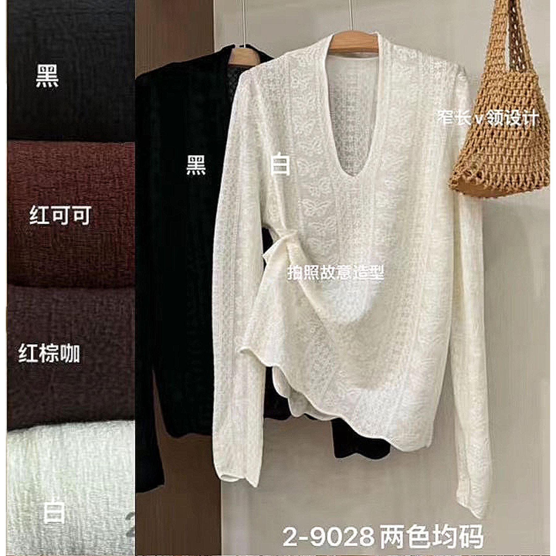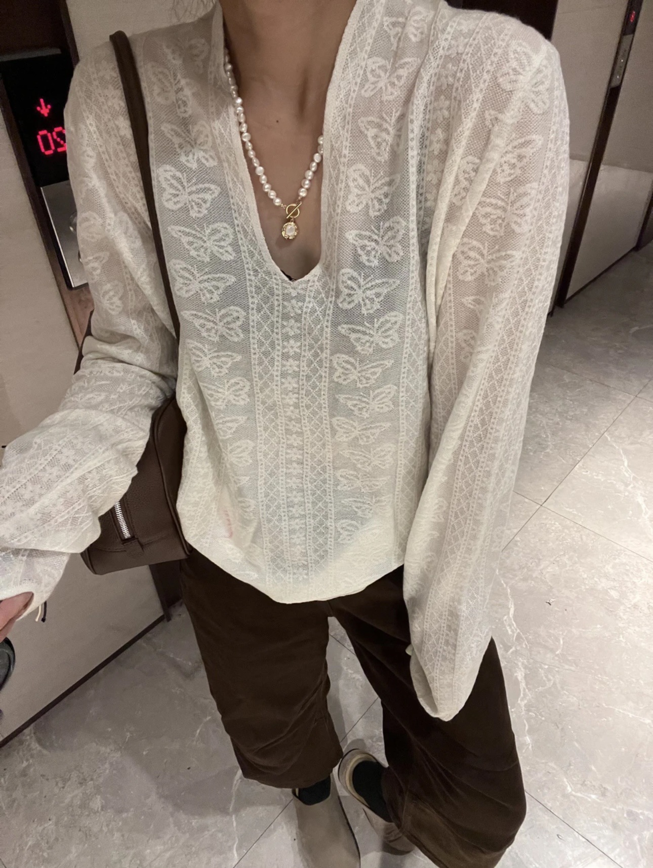 의류 번호 홈 메이드 한국 스타일 이른 봄 V-넥 나비 자카드 니트 셔츠 여성 레트로 울 따기 구멍 탑 종이 새로운스토어 가기